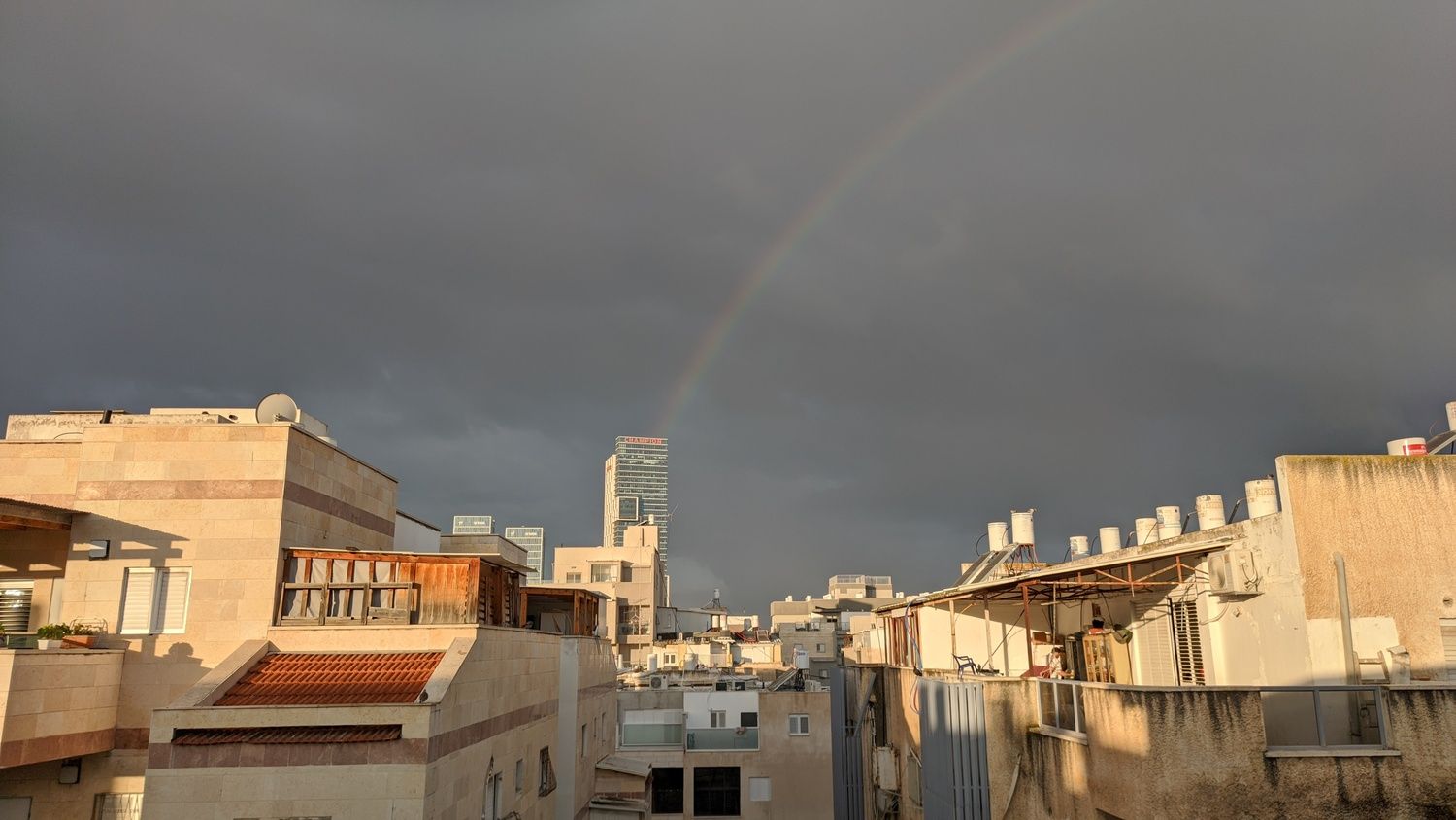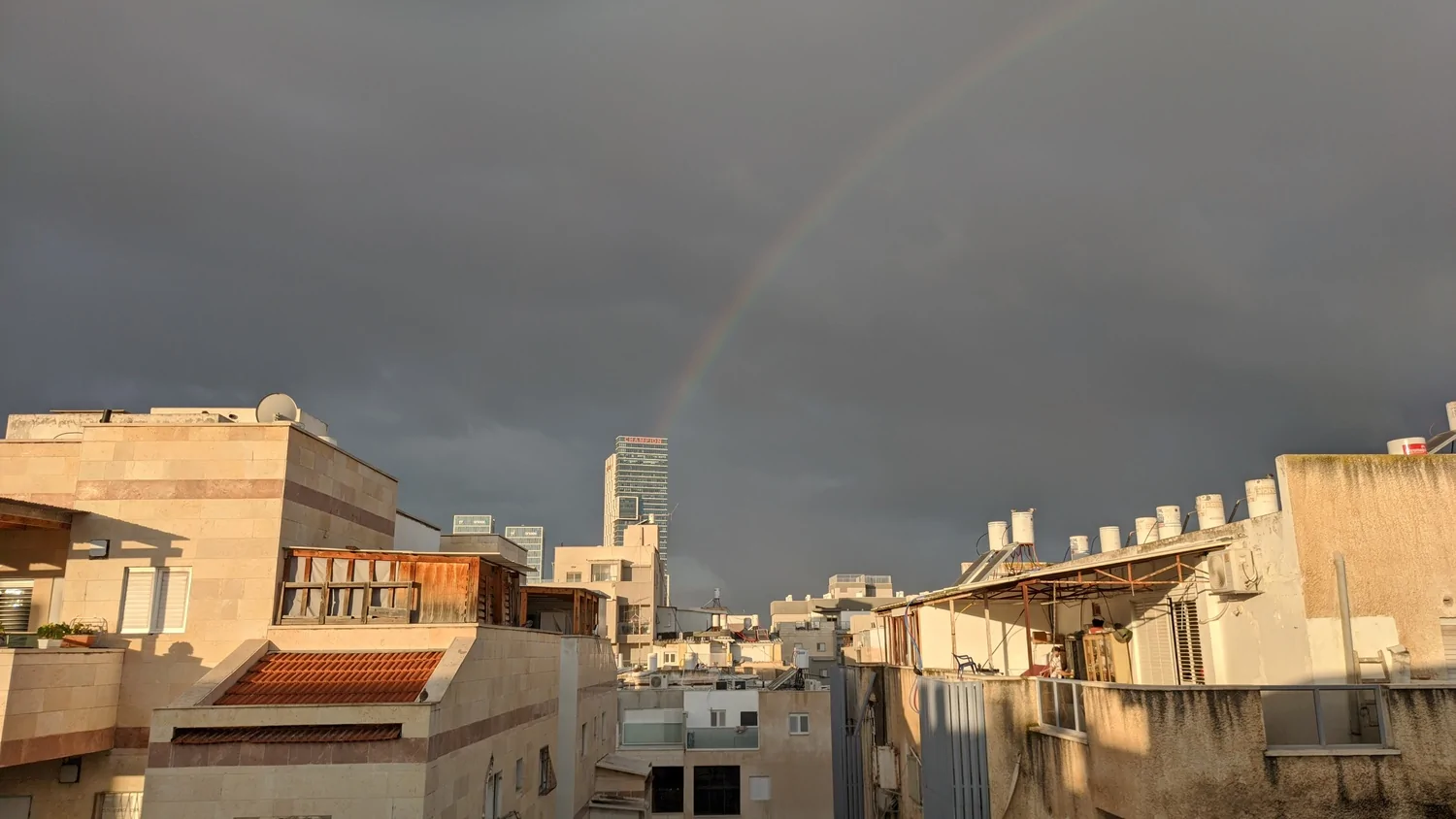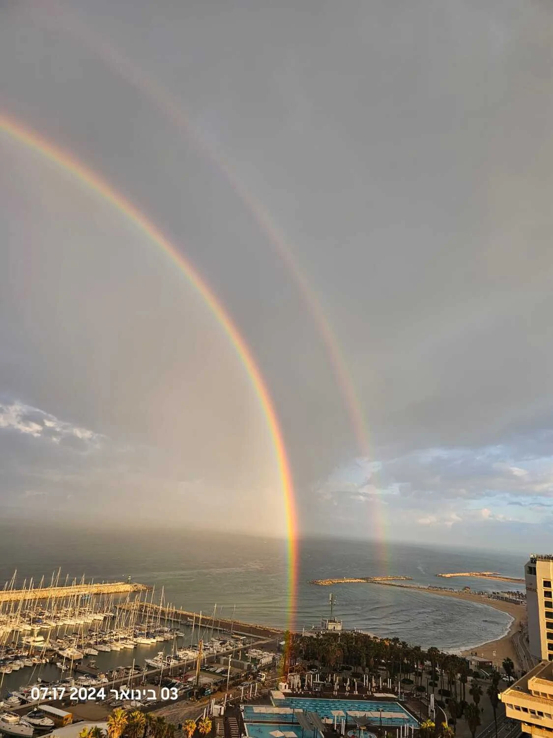 בירידות לראש פינה. קשת כפולה מעל בריכת גורדון בתל אביב.