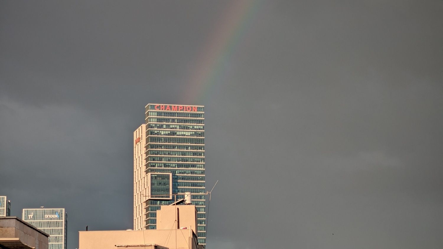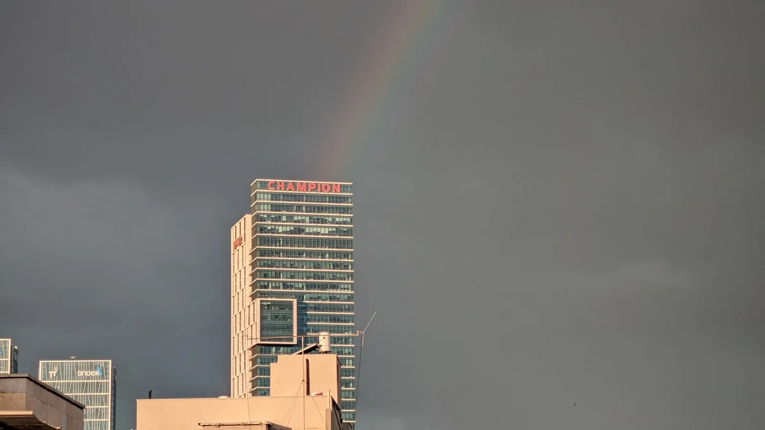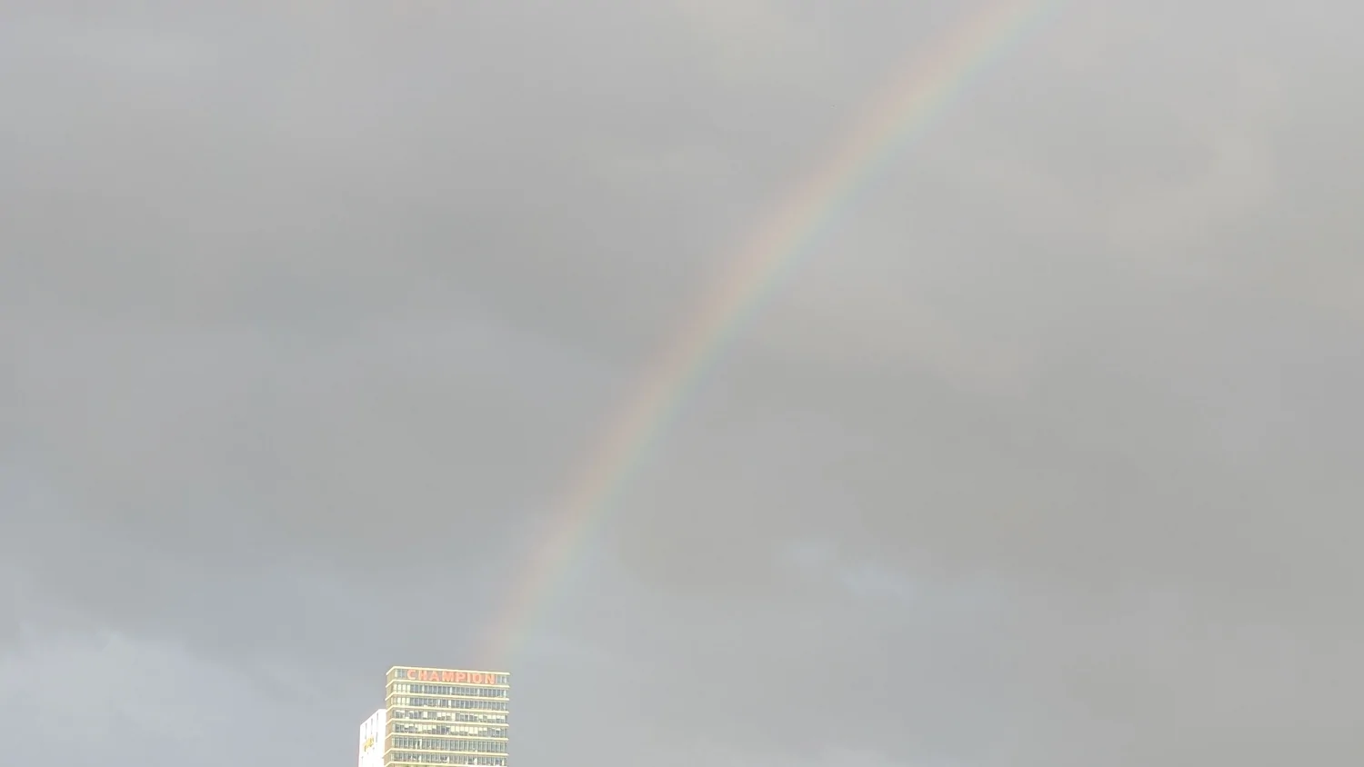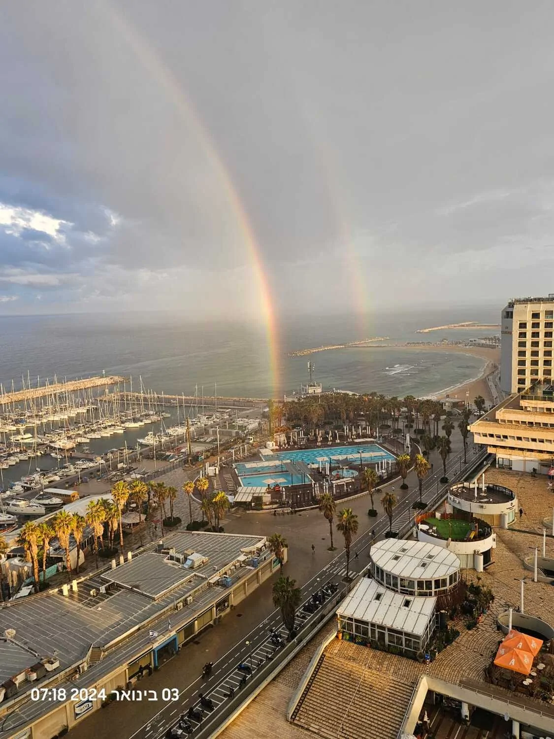 בירידות לראש פינה. קשת כפולה מעל בריכת גורדון בתל אביב.