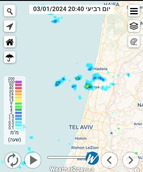- ממשיך עוד גשם מרכז נתניה ולא מתעדכן מפות צבע אופיר נתניה