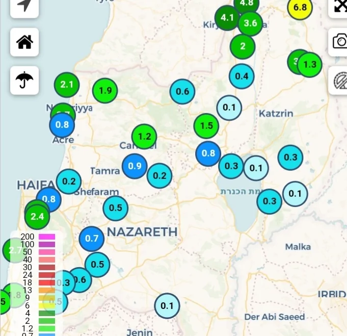- גשם קל בפוריה עילית (מעל טבריה) איתן