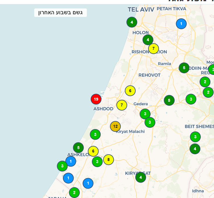 - לפי המכ"ם גשם באשקלון, באשדוד השמיים כוסו