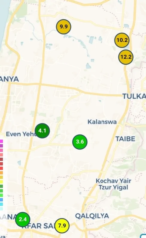 - 10.5 מ"מ בשעה האחרונה - 45.6 מ"מ למערכת עד כה ראש העין