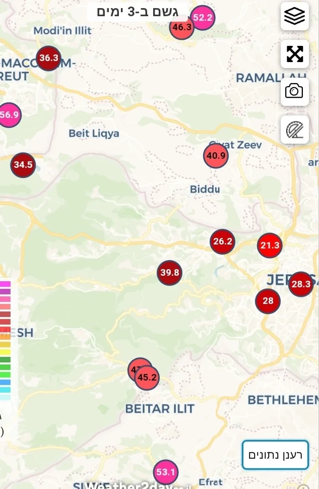 אני מאמין צובה צור הדסה ועוד באזור דרו מערב ירושלים כבר מגיעים ל60 מ"מ