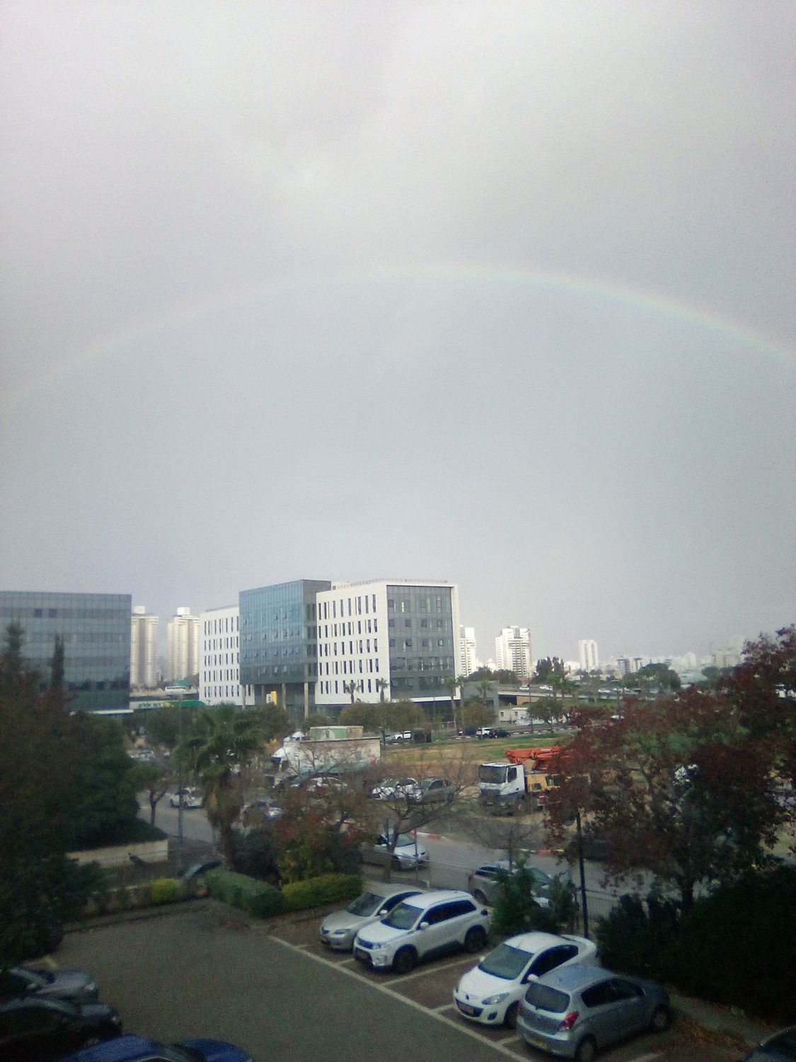 - מתחיל פה עכשיו גשם. הקשת הייתה גדולה לשנייה ונעלמה נעם