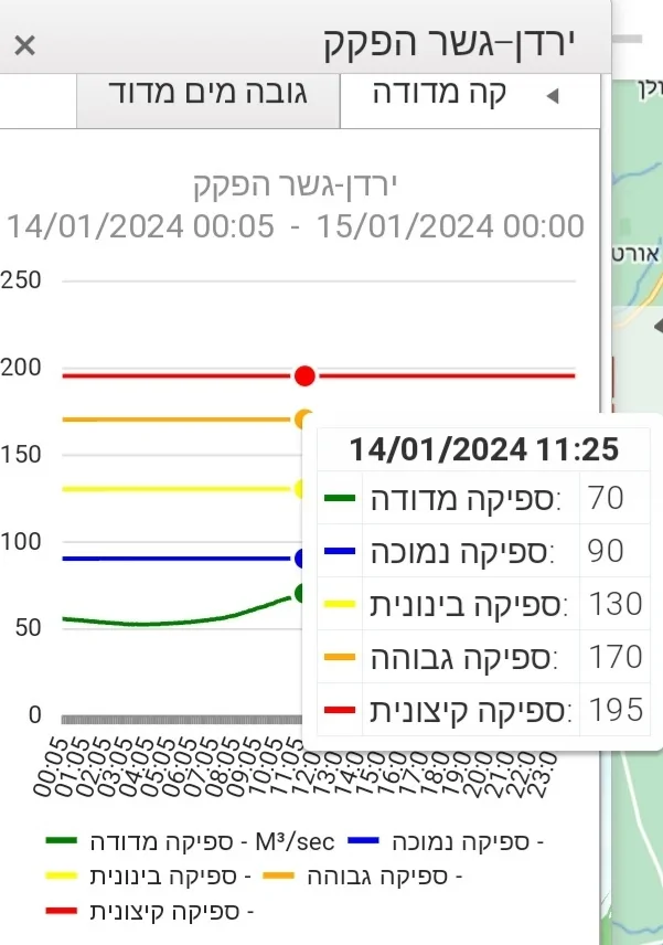 - הירדן בגשר הפקק הגיע ל-75 קוב/שניה חנוך א