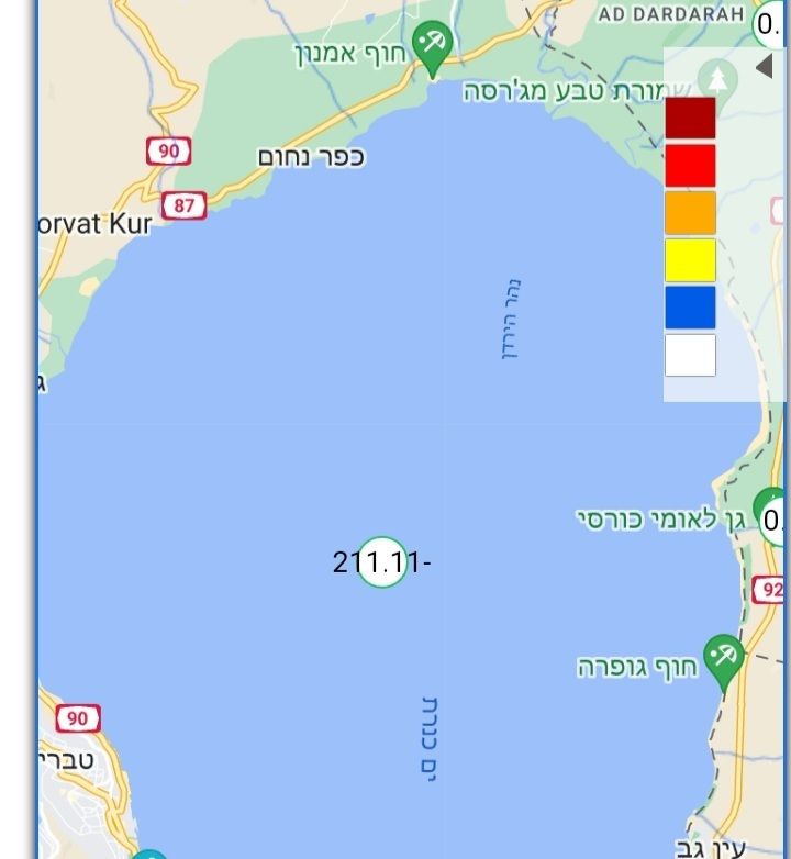 דבר קטן, המד מפלס של הכינרת מראה מינוס 211. בלי ערך לאחר הנקודה. ככה לא ניתן לראות את שינויי המפלס על בסיס יום יומי.