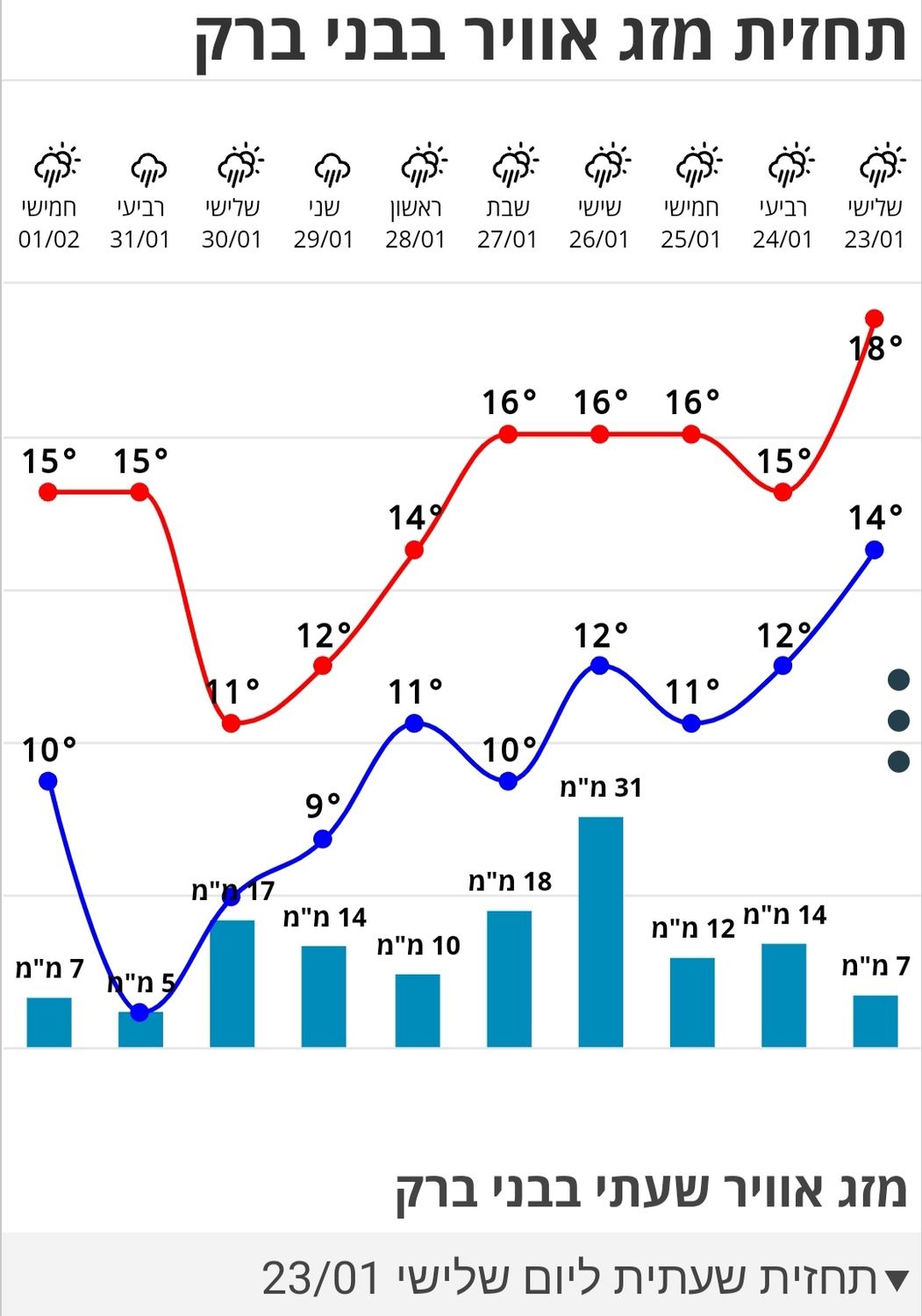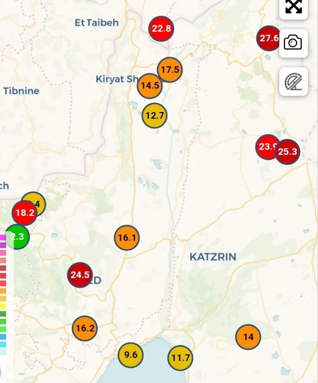התחזית להיום היתה 9 מ''מ, בפועל ירדו 22.5 מ''מ.