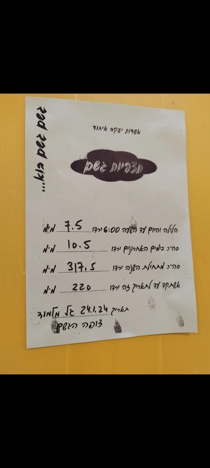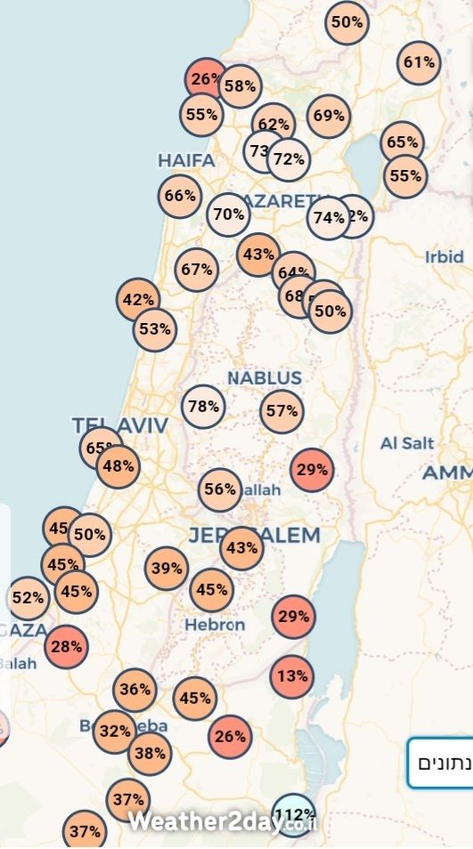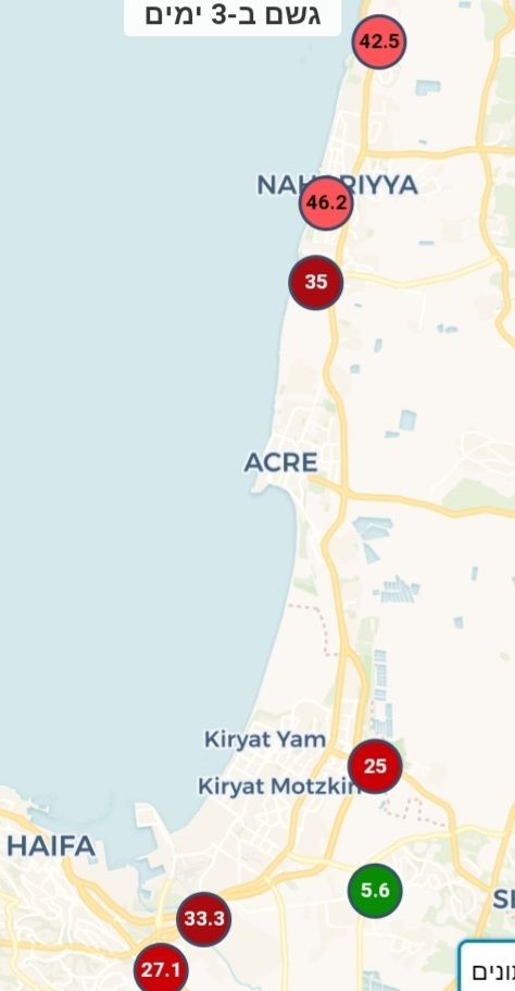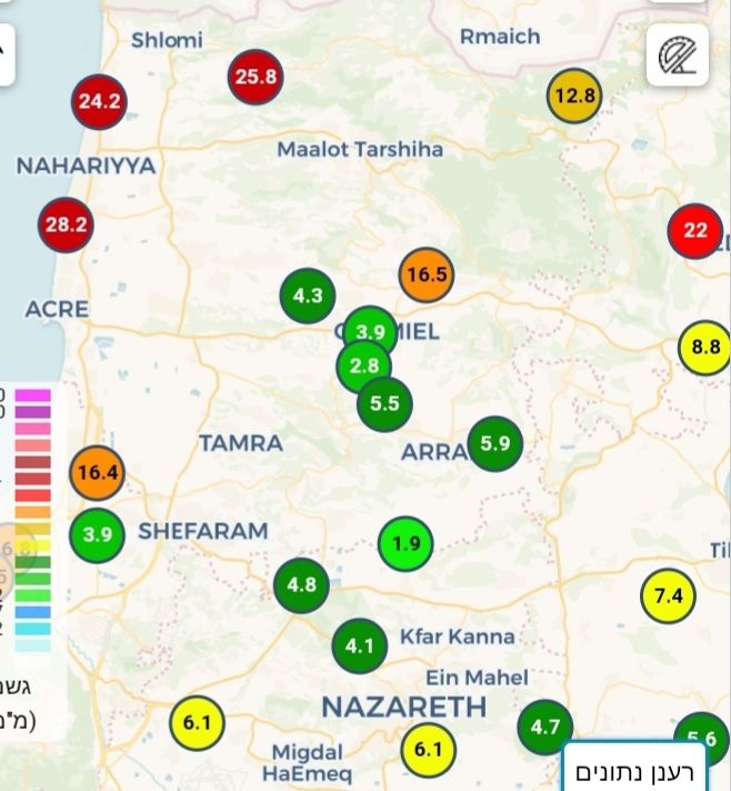 - העונתי זה 540 מ"מ ממוצע על נתניה. כעת אנחנו על סביבות 405 מ"מ. חסרים כ-135 מ"מ לעונתי. דיווח מנתניה