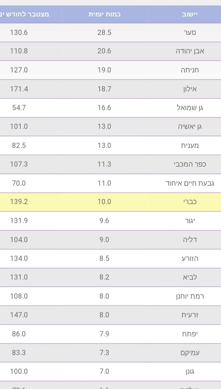- סה''כ מתחילת המערכת: 43.2 מ''מ, חודשי- 140.4 מ''מ ז'ק