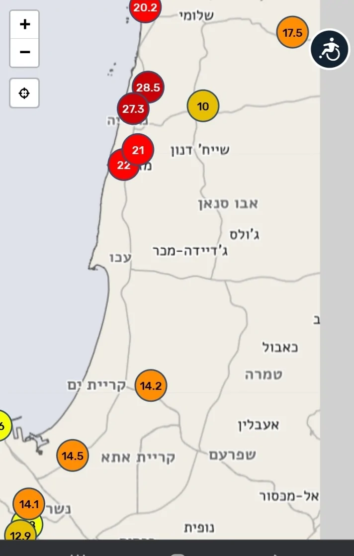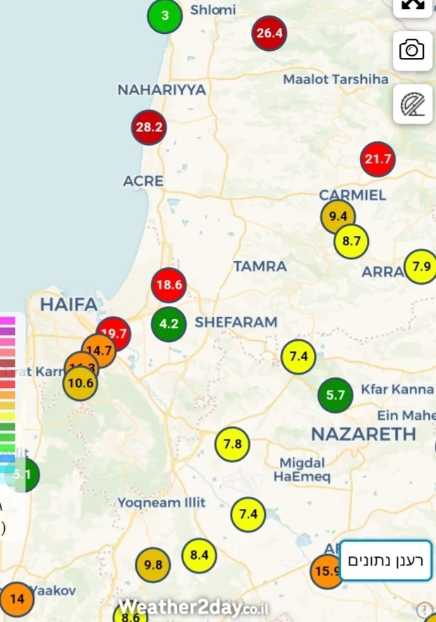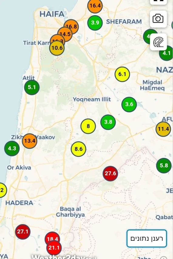 - נתניה כמויות עד לרגע זה (הערכות): דיווח מנתניה
