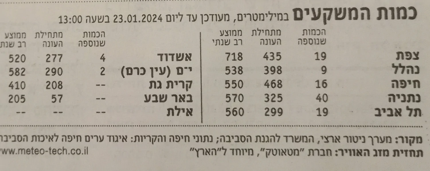 ה-22.01 היה ללא משקעים, כך שזה המספר לאחר יומיים של גשם.