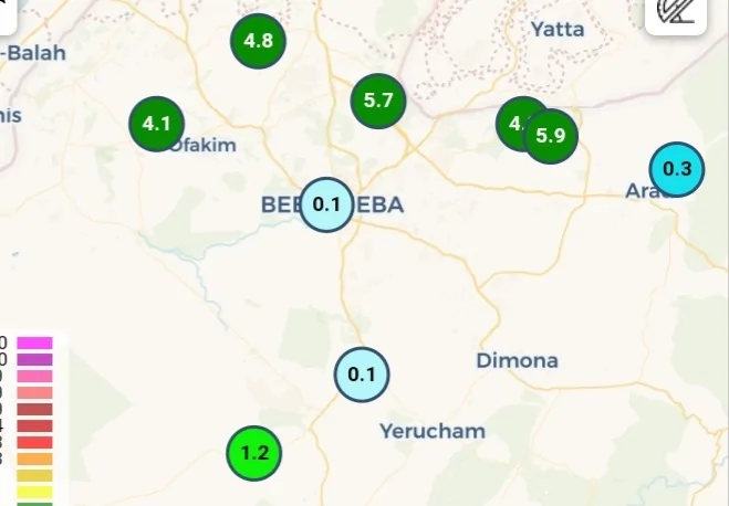הכמות למערכת כולל גם 0.6 מ''מ שירדו ביום שני.