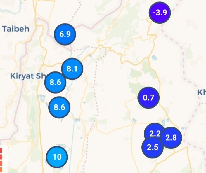 בבית שאן כעת 9.8 מע' עם 91% לחות