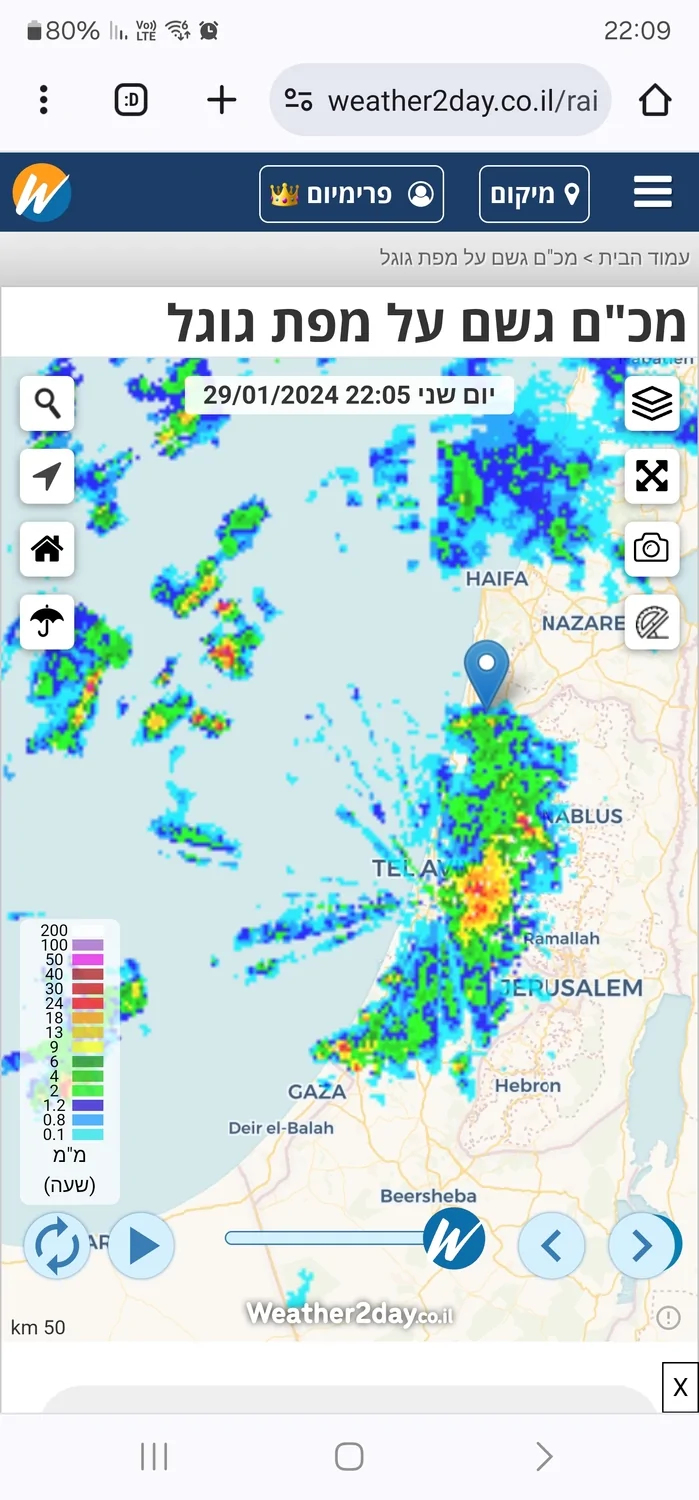 - גשם שוטף בגוש דן ברקים ורעמים מתקרבים שגיא