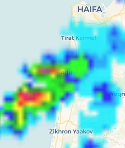 בכרמיאל גשם בינוני-חזק כבר זמן מה