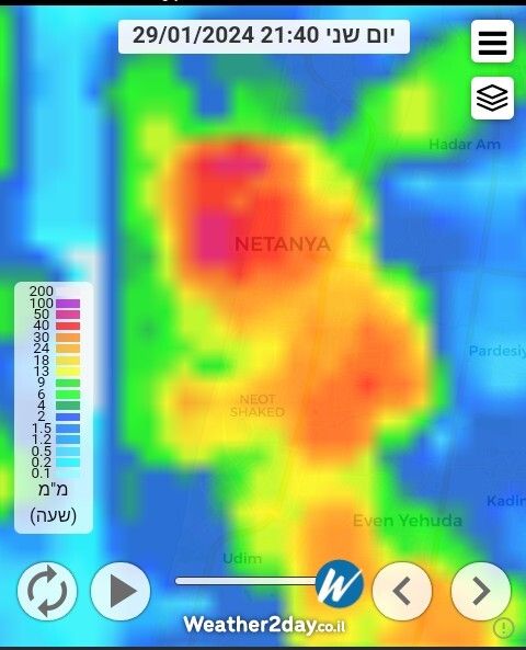 - מבול עוצמתי על מרכז העיר. צפי ללילה פעיל מאוד דיווח מנתניה