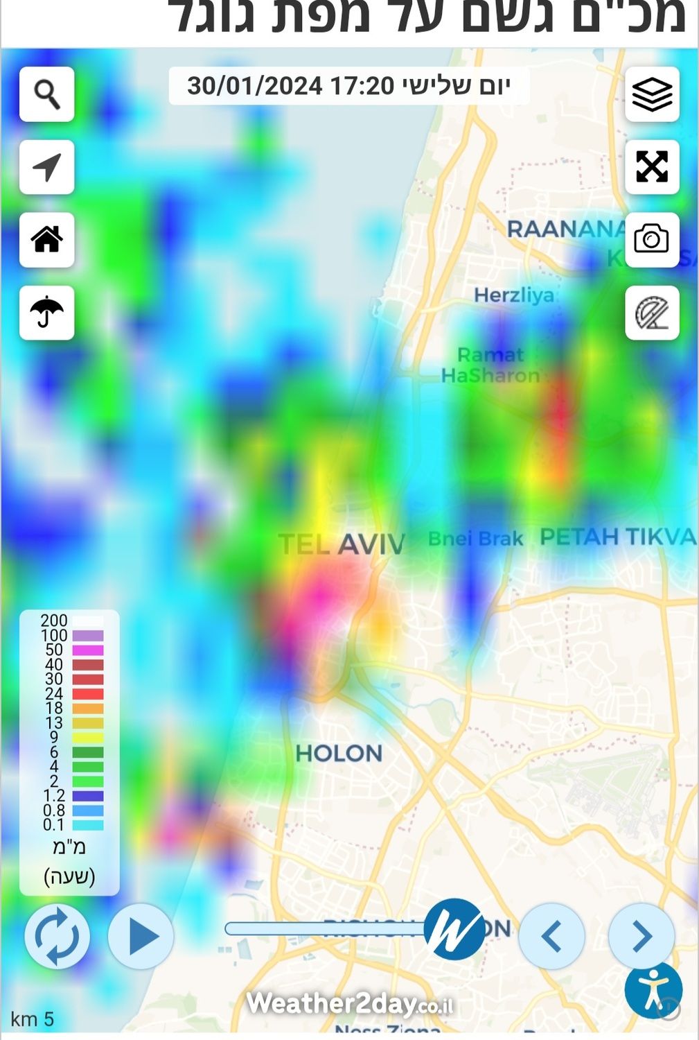 תל אביב מרכז גשם כבד. המכם חזר ותומך.