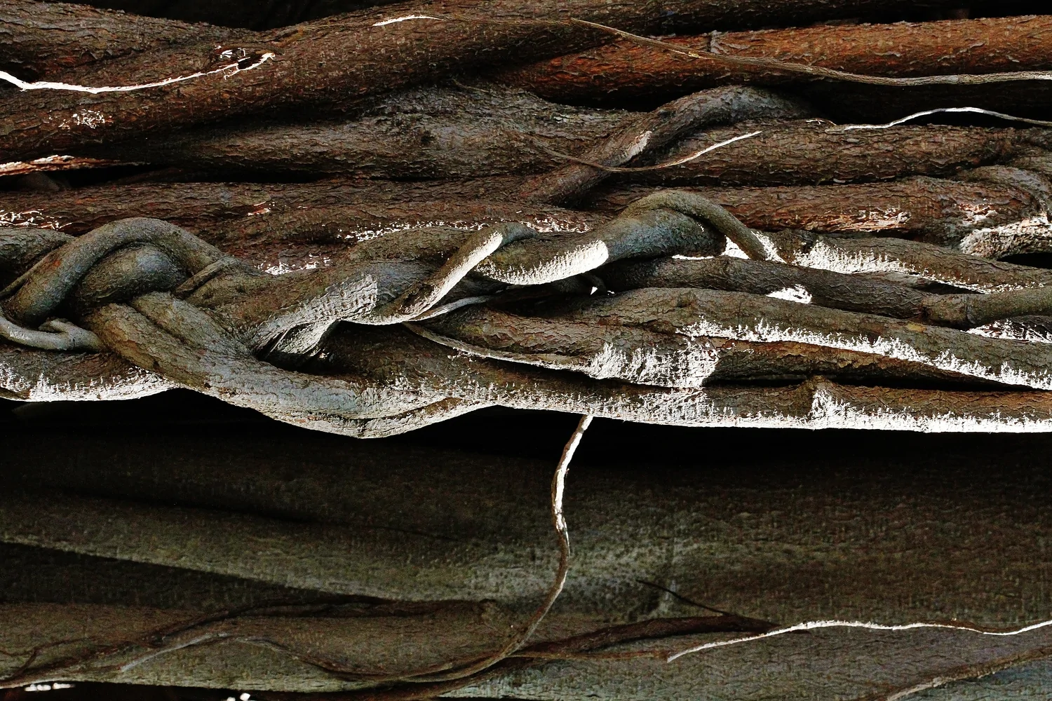 - שורשי אויר של פיקוס חלוד. יש שורשי אויר שהפכו לגזעים יפים בגן הטרופי הסמוך שמורת העין