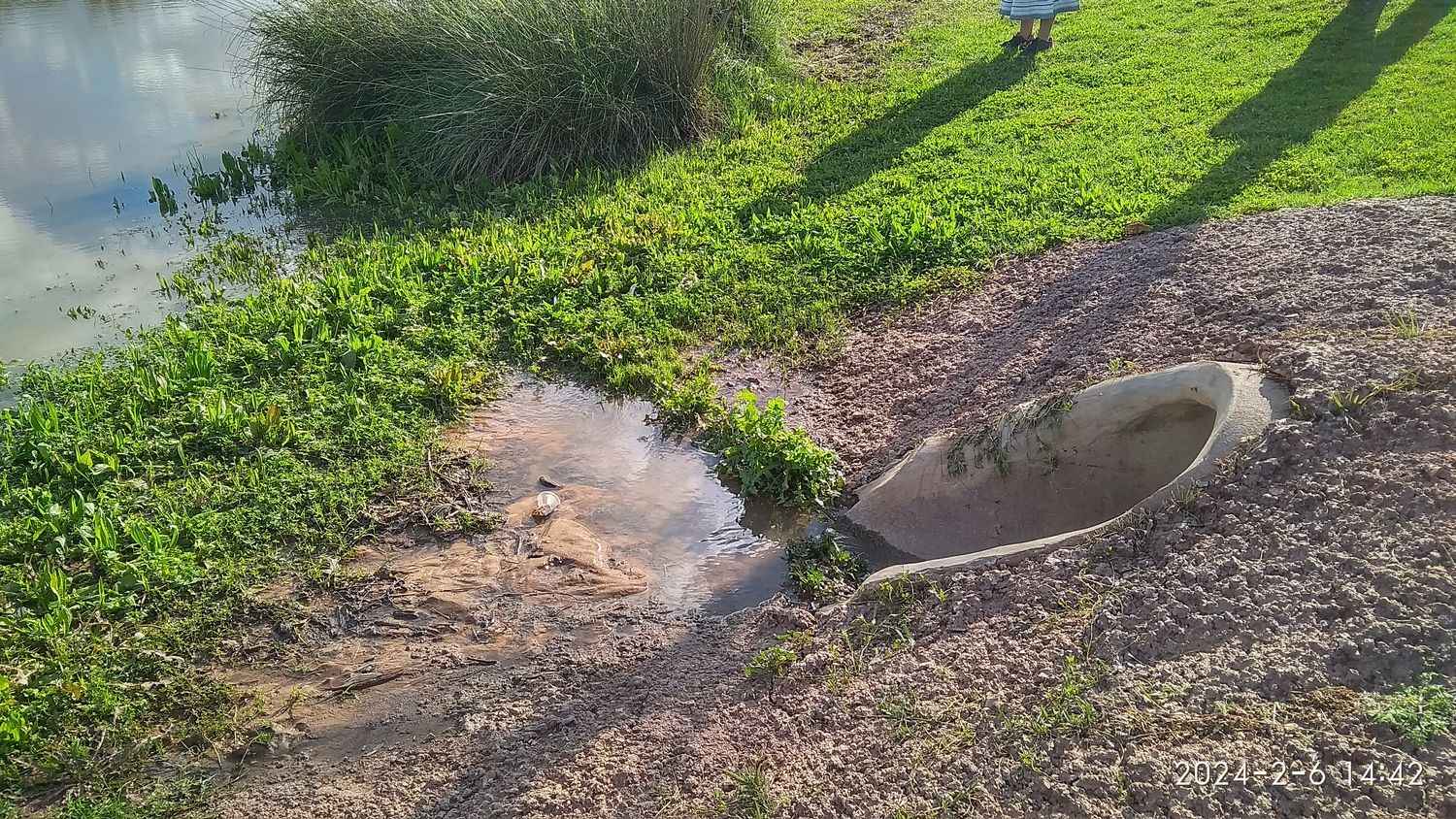 צינור ניקוז שנבנה סמוך לשטח ההצפה אחראי על כך שמפלס המים הקבוע לא יעלה על 1.35. כאשר המים עוברים את הגובה הזה הצינור מנקז אותם לנחל הסמוך. אבל בזמן גשם חזק פעמים רבות שהצינור לא עומד בקצב, וכמות המים הזורמת לשטח גדול מהכמות שיש בכח הצינור לנקז, מה שמביא לעליה זמנית של מפלס המים לרמות של 1.5 מ' ומעלה, דבר שקרה פעמים רבות בימים האחרונים כפי שאפשר לראות בשטח את סימני ההצפה בשטחים שסביב האגם.