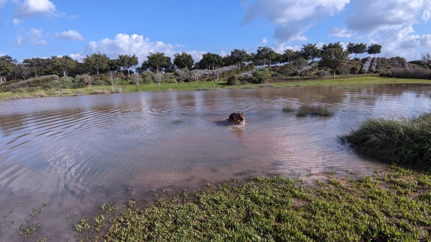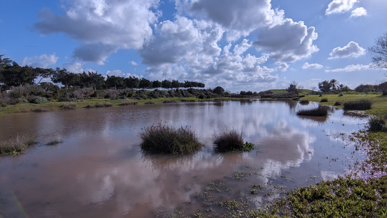 בקיץ יש כאן מידשאה. אבל בחורף גשום השטח מוצף, ובחורף כמו השנה הוא מוצף מאוד. זה כבר לא בריכת חורף אלא אגם חורף.