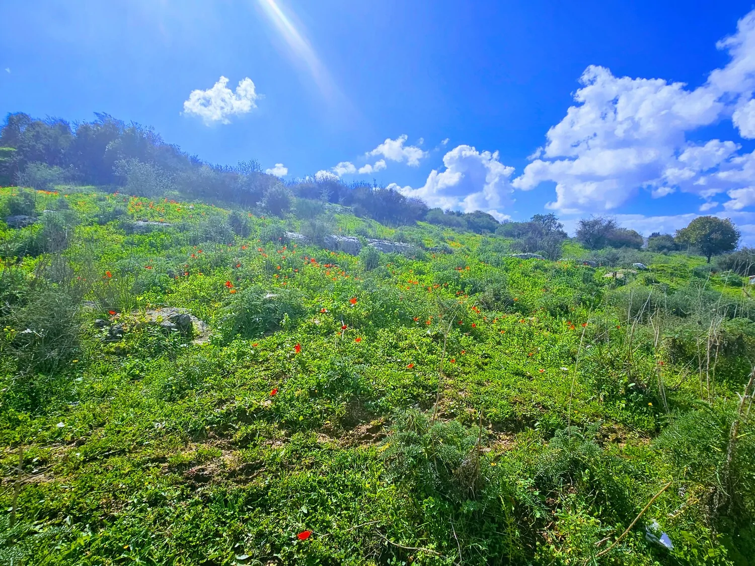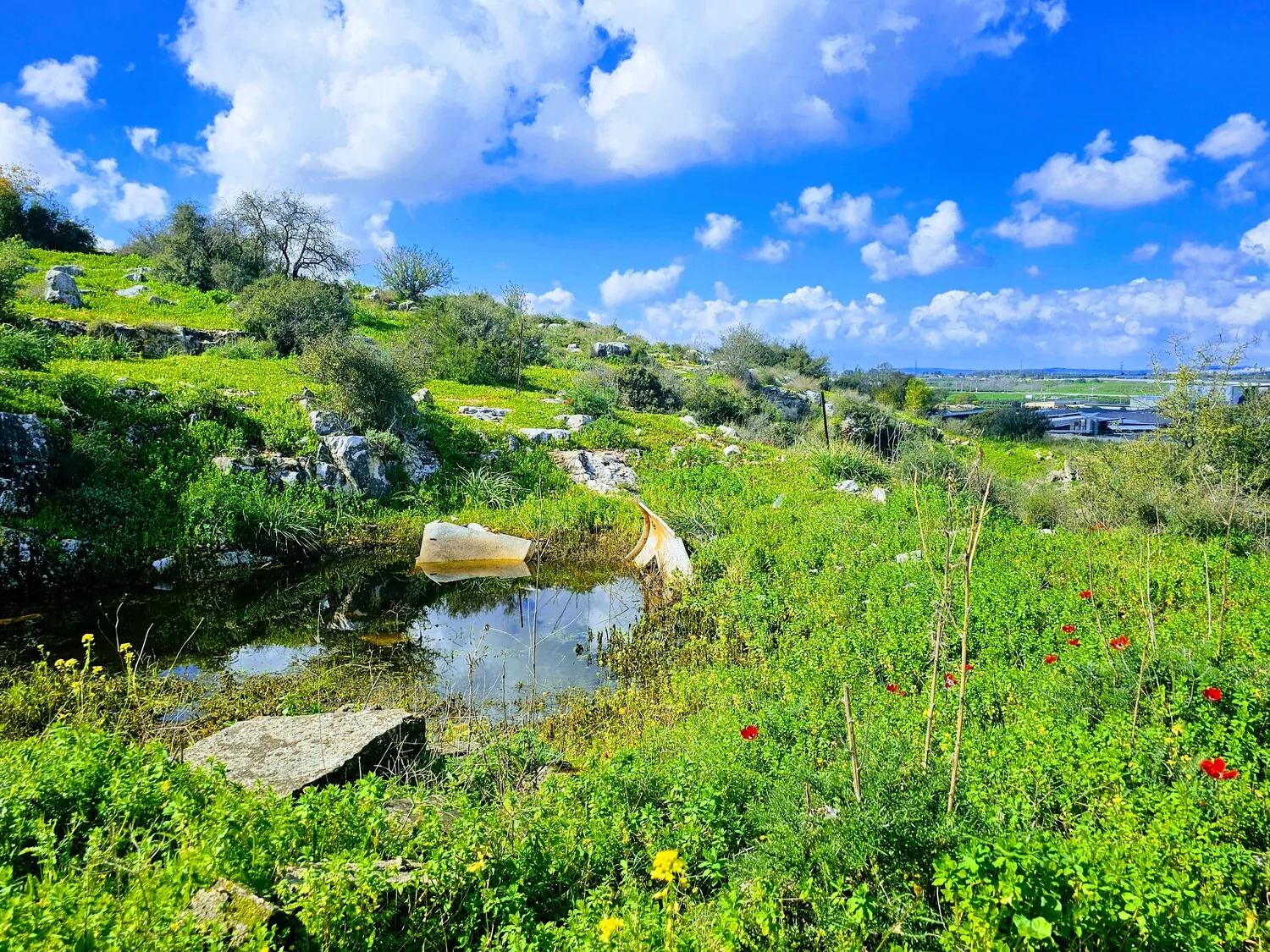 - שלוליות מים ופריחת כלניות מרהיבה ביופייה נתנאל