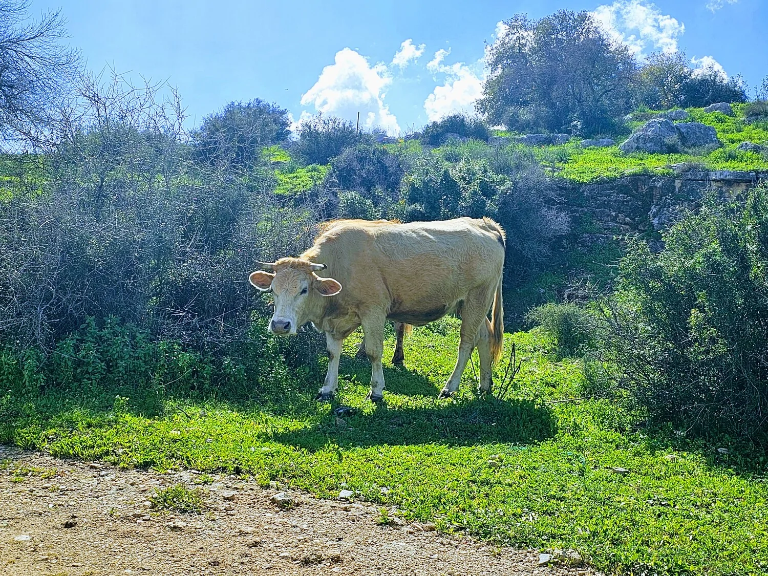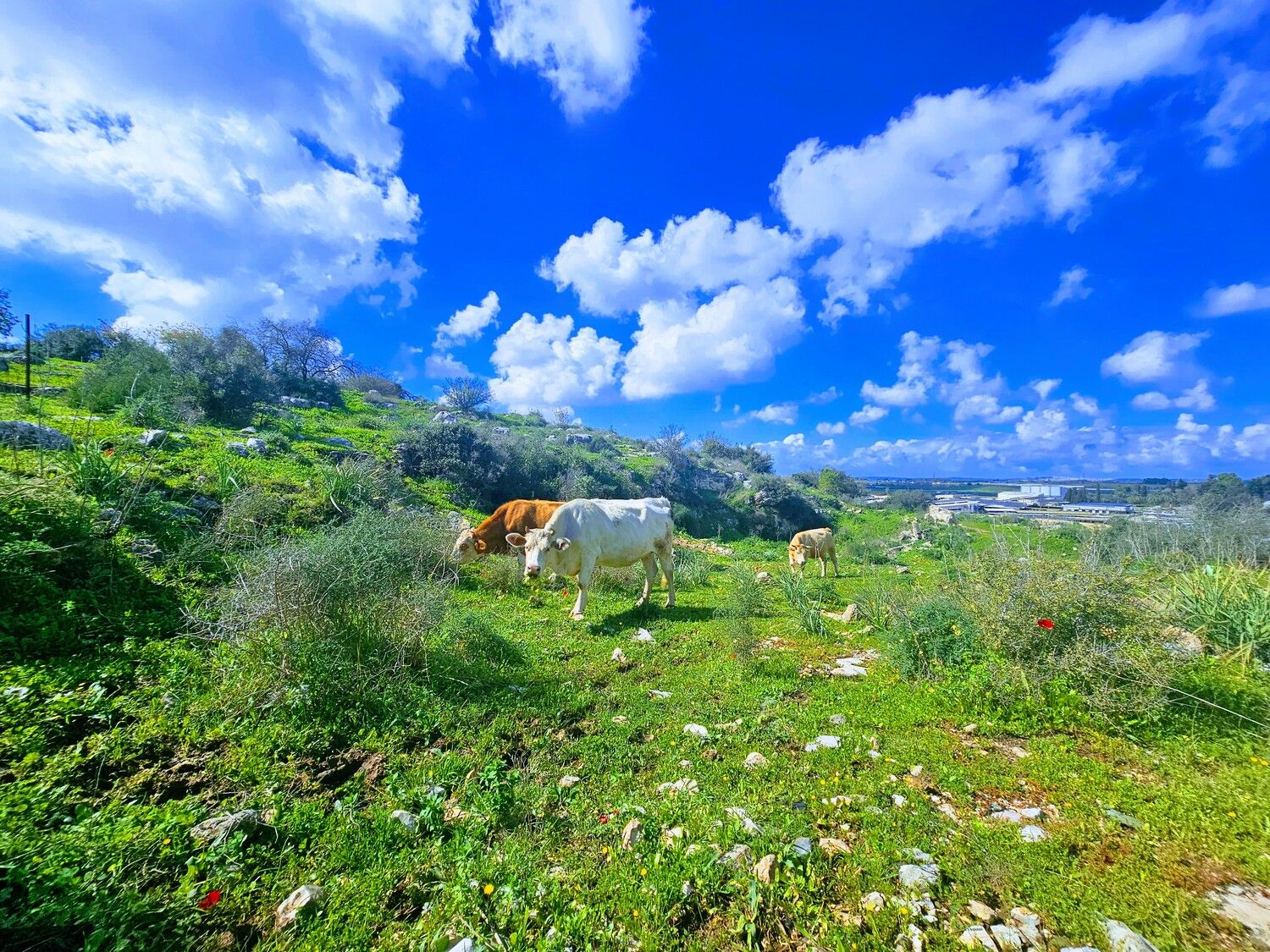 בכניסה לעיר חריש טבע פורח ומרהיב ביופיו לצד געיית פרות