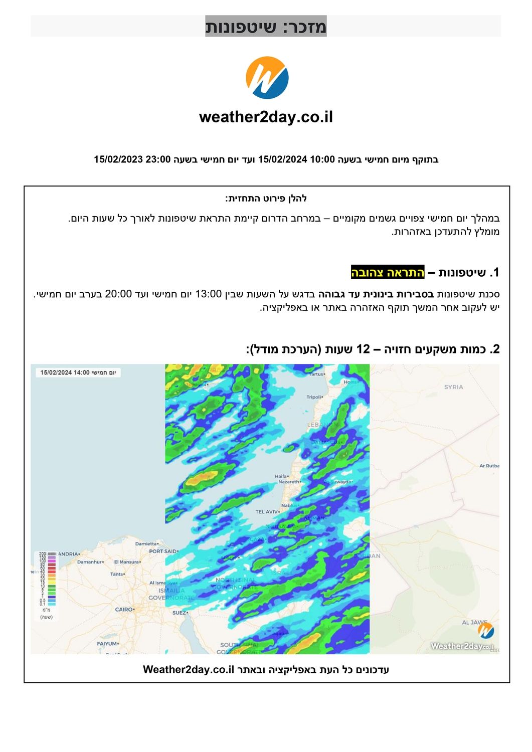 - מחר סכנת שיטפונות בנחלי הדרום והמזרח Weather2day