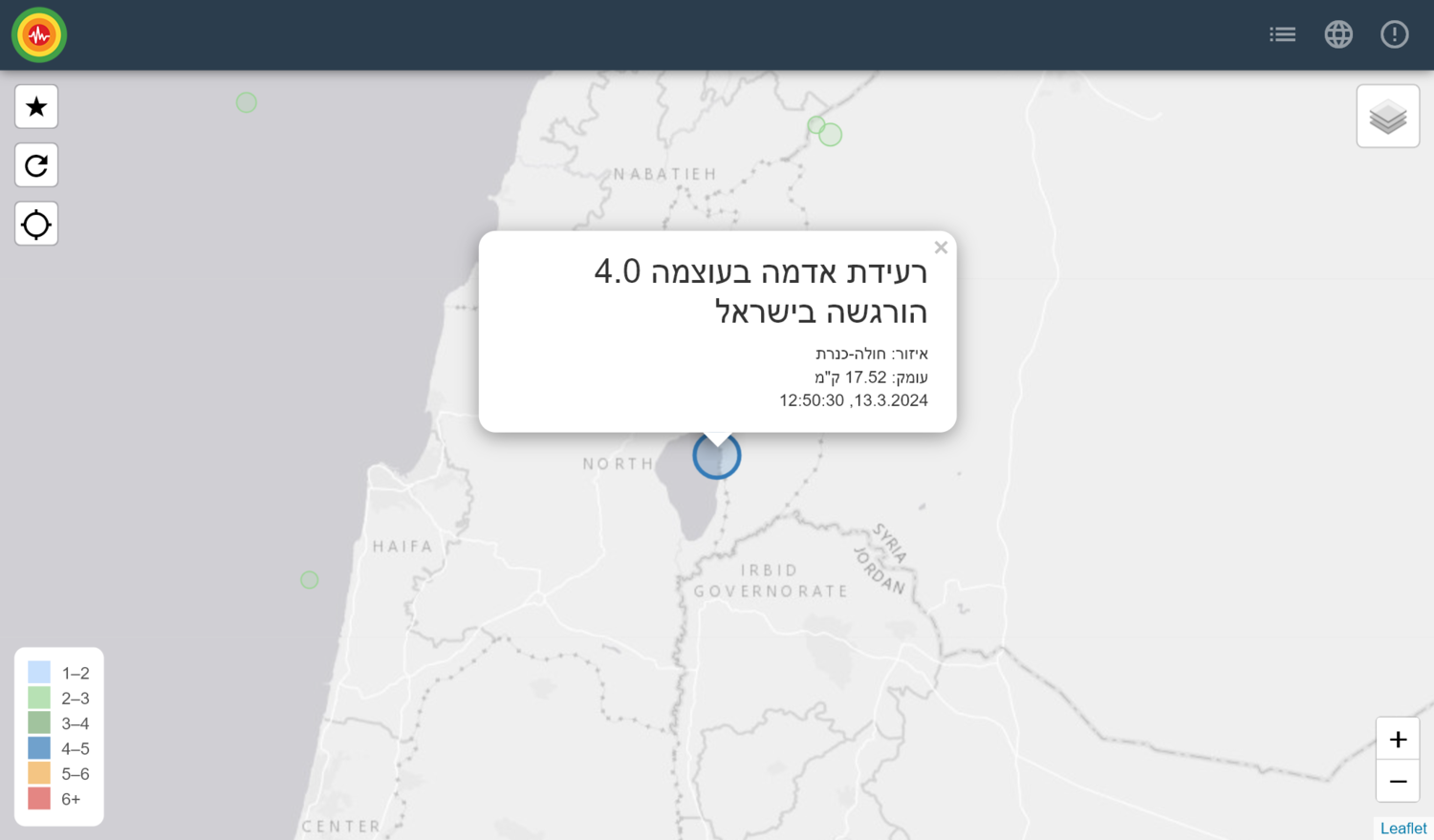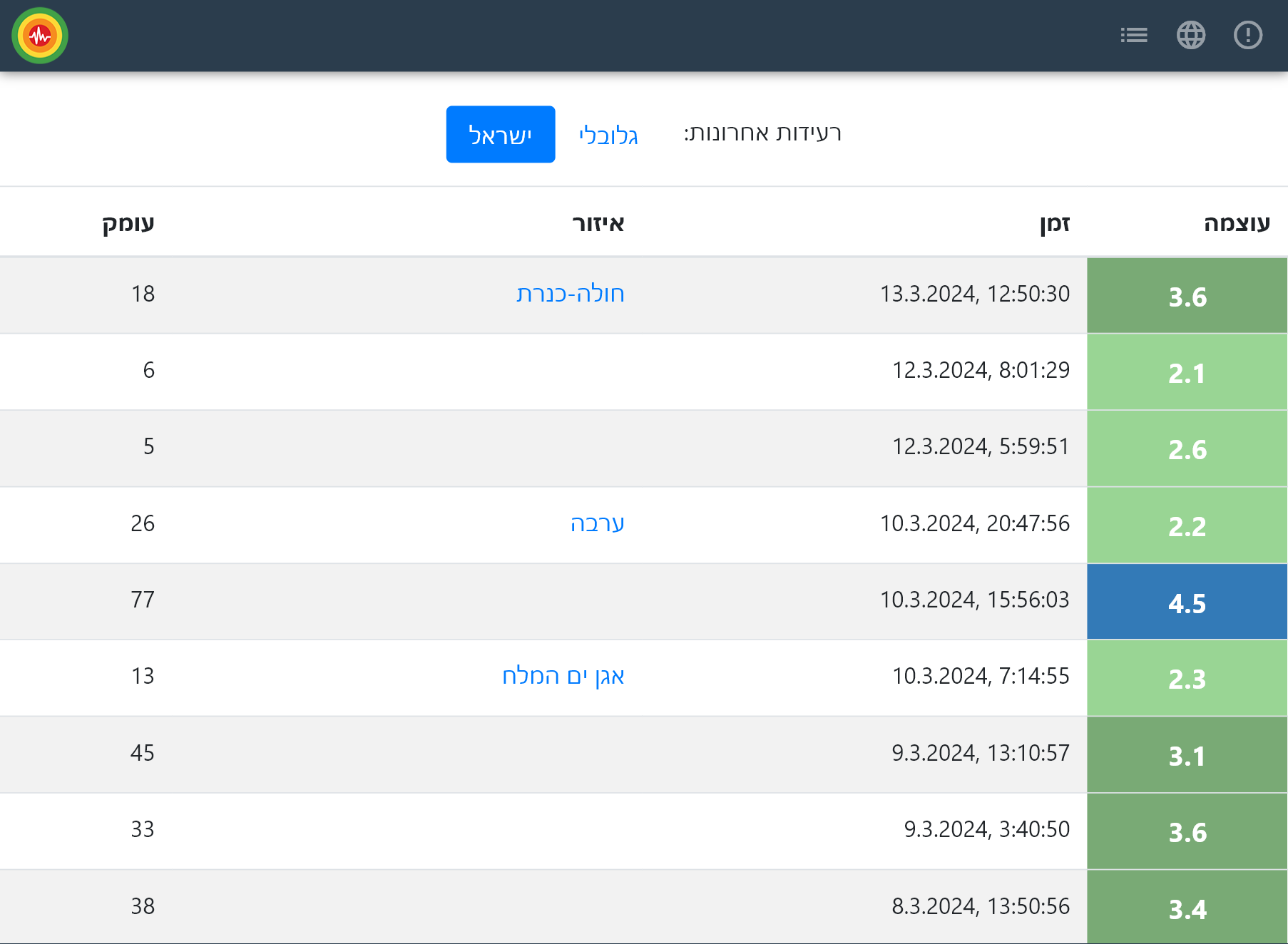 - מעודכן + רשימת רעידות אחרונות בישראל Weather2day