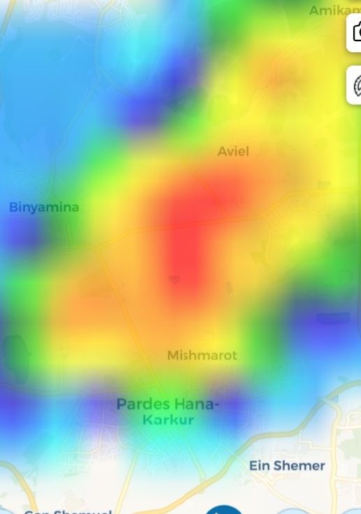 - רוב האדום מחוץ לפרדס חנה בסוף רק djishai