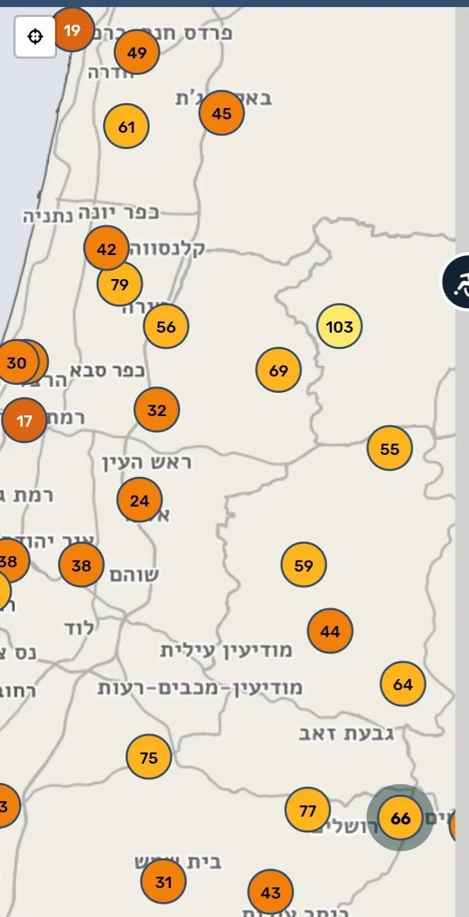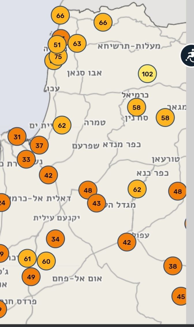 - אבו סנאן 97 ממ למערכת, במכם אפשר לראות שברכבת גשם אתמול כל הזמן היו גושים חזקים וצבע אדום מרדונה הזימה