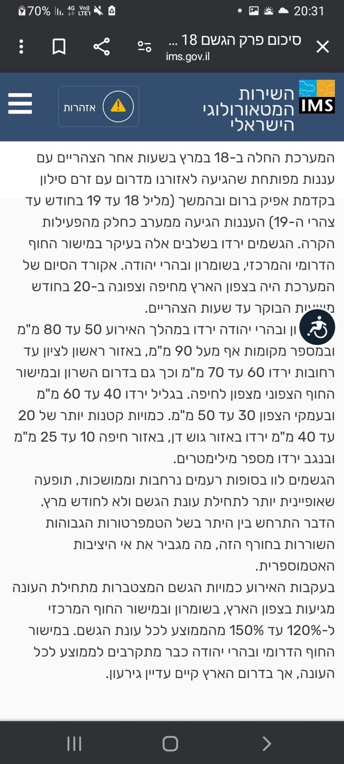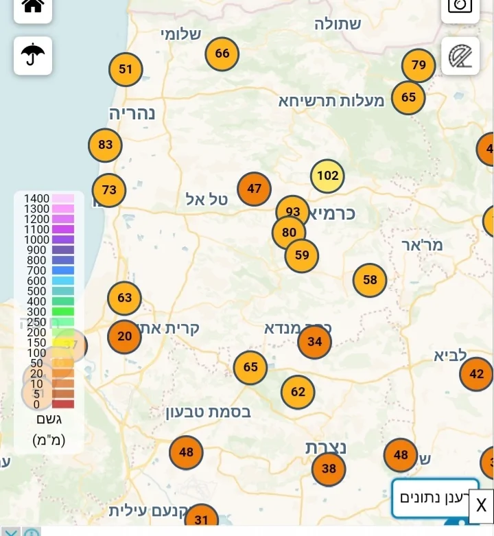 חודש מרץ - אביחיל - 84 ממ, תובל מול כרמיאל - 81.5 ממ