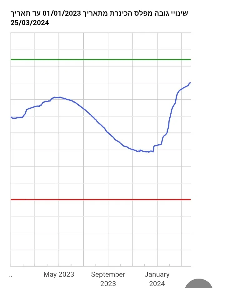 ב 1/10/23 היה המפלס 211.305- חסר 2.505 לקו העליון