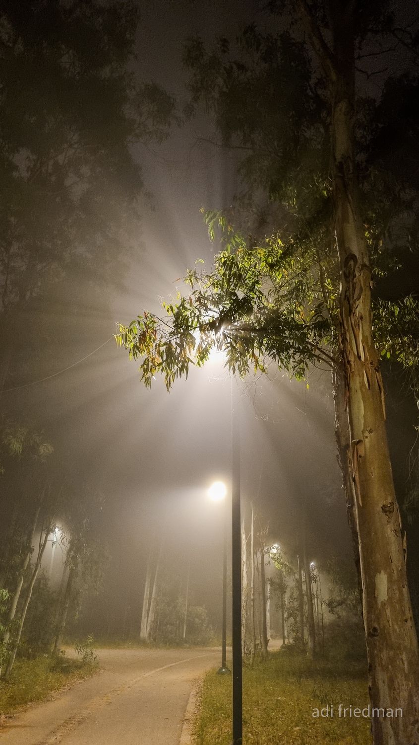 - הערפל חזר. האורות הרחוקים ברקע נמל איריס קריות