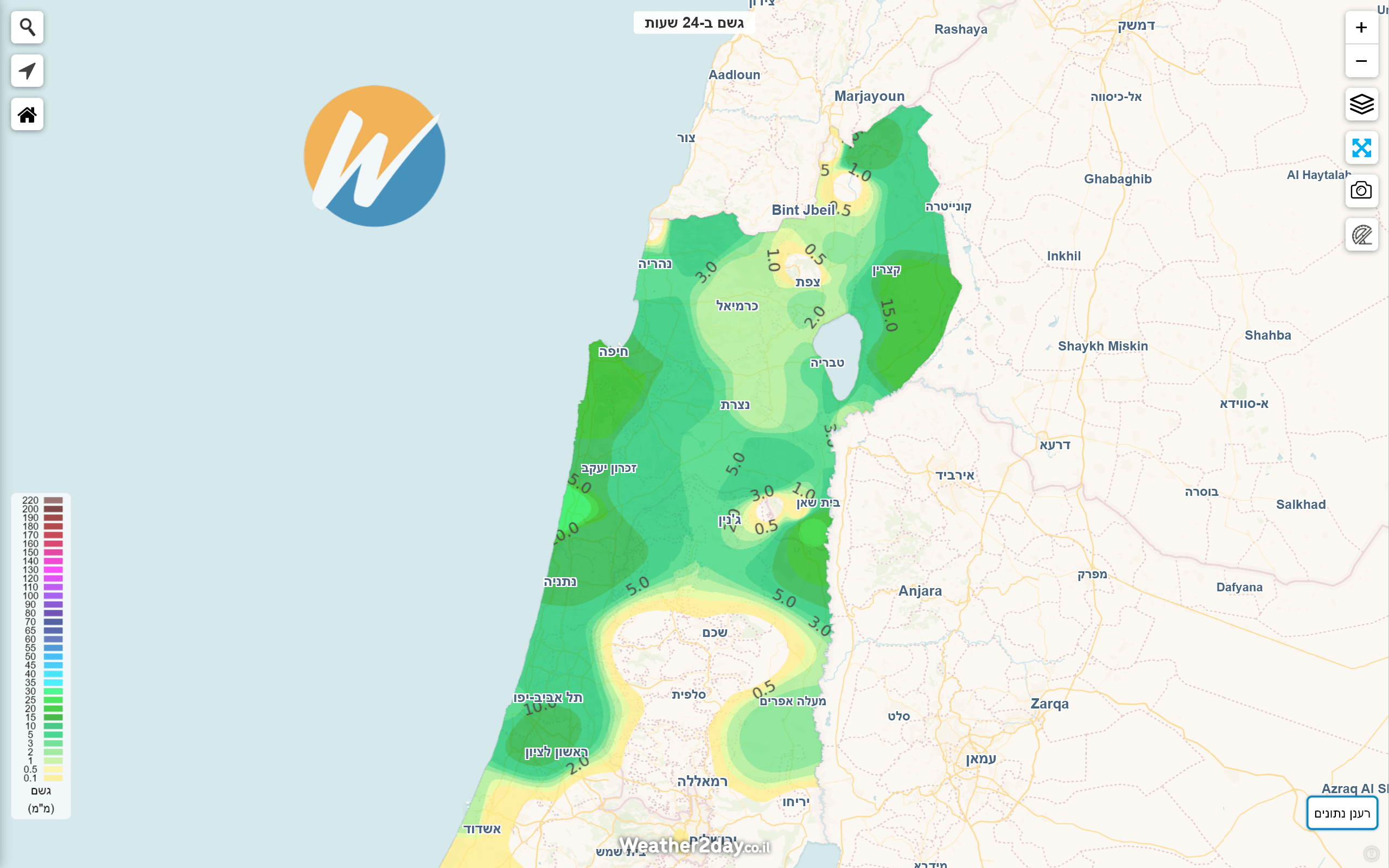 - כמויות המשקעים המצטברות להיום Weather2day