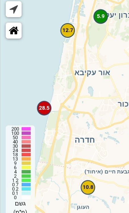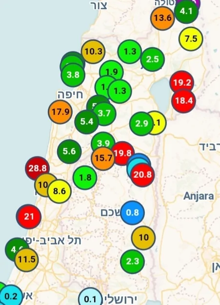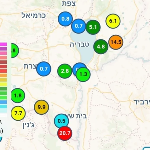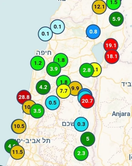 - ואכן הכמויות באזור המפרץ והכרמל נעות בין 13-17 מ"מ למעט מאט 2
