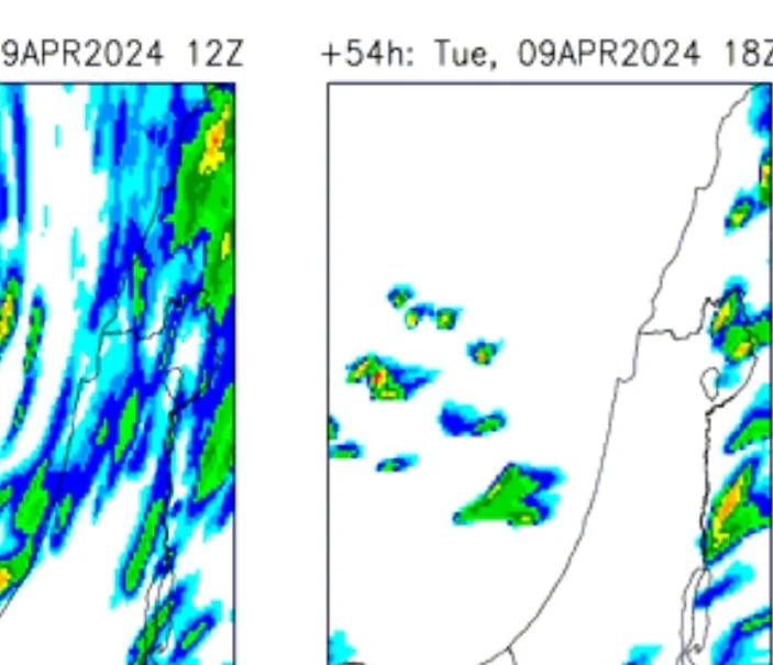 - לפי קוסמו, עד 1400 סיכוי לגשם קל, אחרי זה יבש חנוך א