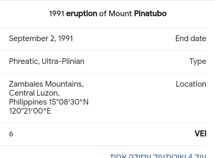 - ההתפרצות של פינטובו הייתה בעוצמה VEI 6 חנוך א