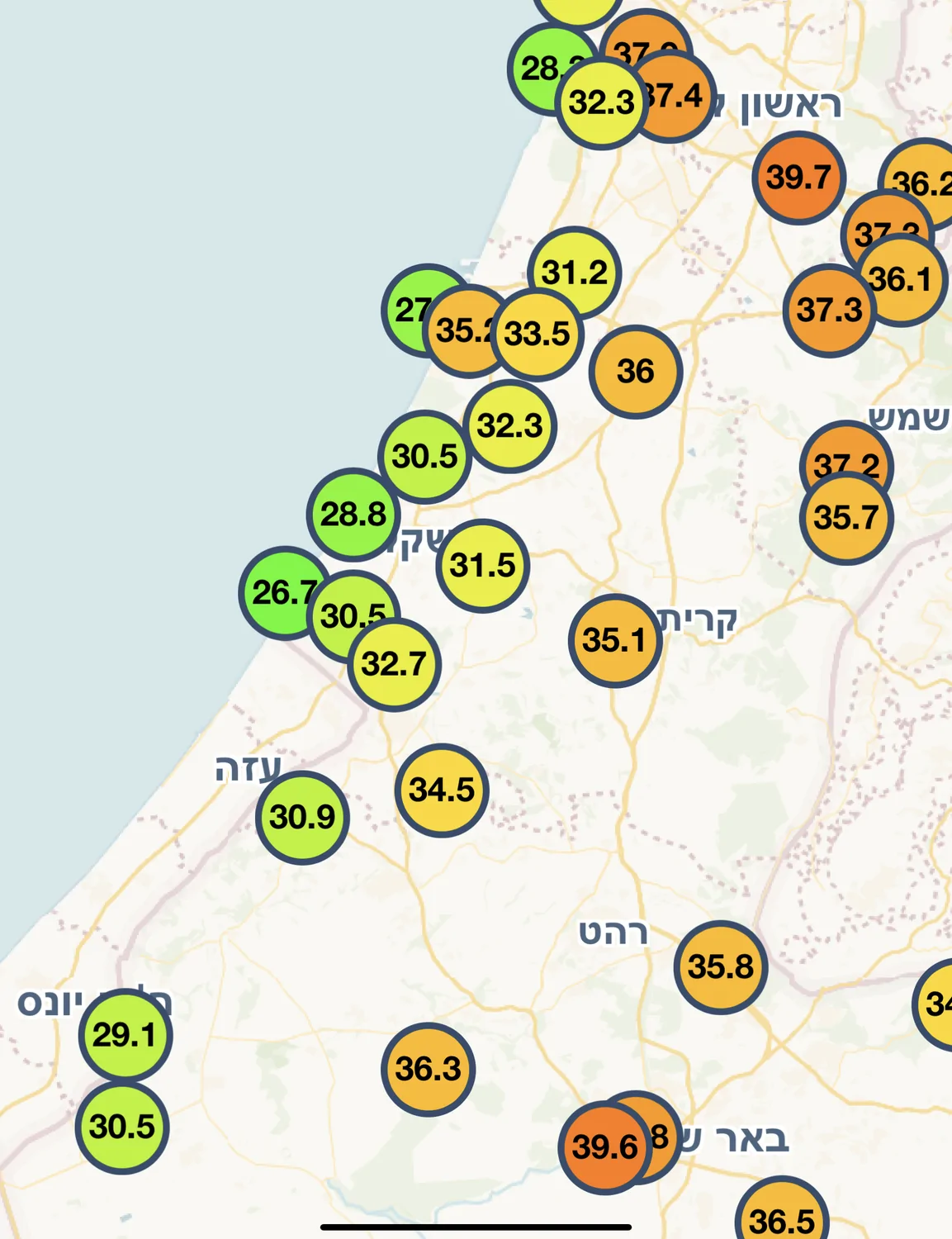 - אתמול בשיא 38, היום קרוב ל-40. כעת בחוץ עדיין לוהט אך פחות, ירדה הטמפרטורה כעת לסביבות 36 דיווח מנתניה