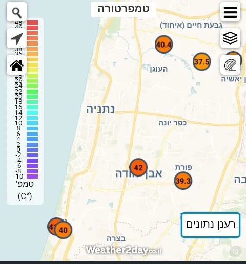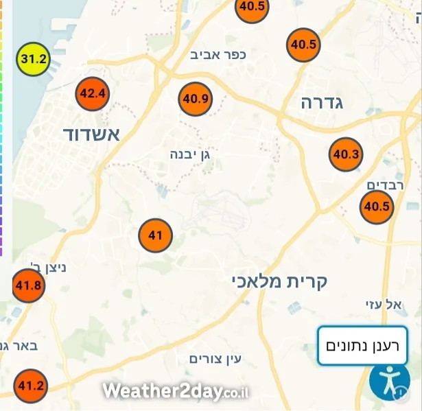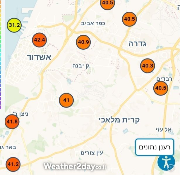 - 40 מעלות בניצן (חוף דרומי) המרוחקת כמעט 4 ק"מ מהחוף Weather2day