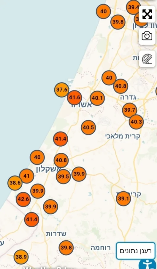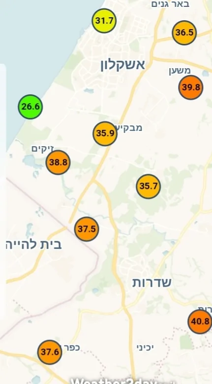 - נכון לשעה 12:00 - חולון חצו את רף ה-40 מעלות אורי