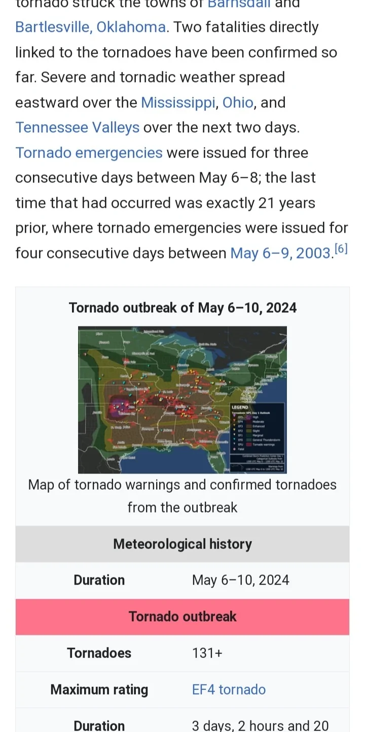 גם מתקפת הטורנדו (מעל 130 מאז 6/5/2024) היא החזקה ביותר מאז 2003