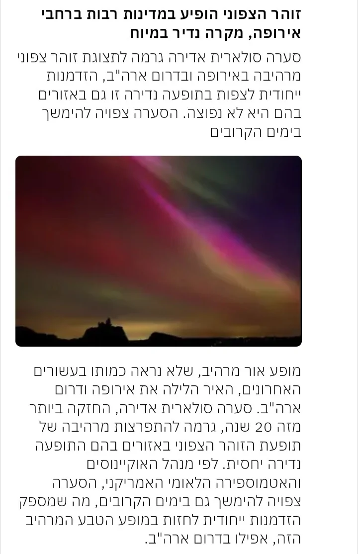 יש מצב שיהיה את הזוהר הצפוני בישראל החמה?
