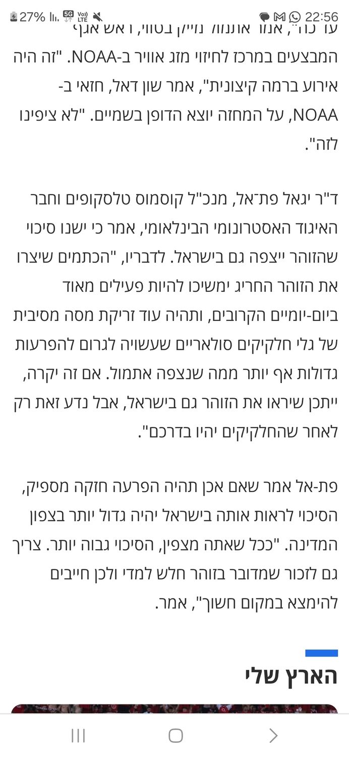 - יש מצב שיהיה את הזוהר הצפוני בישראל החמה? אופיר פרנקו