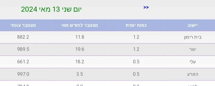 למאי יש 24.6 מ"מ, לעונה 862.6 מ"מ שהם 140.9% לעומת הממוצע הרב שנתי.
