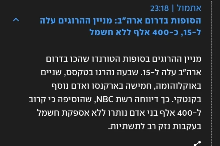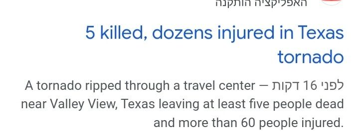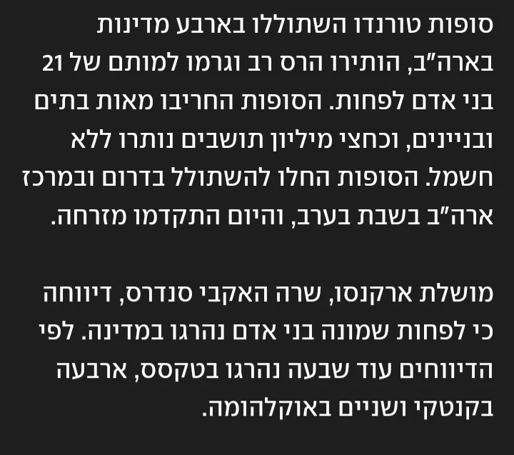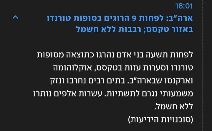 - הבלאגן חוזר עם התרעות טורנדו בטקסס ואוקלהומה חנוך א