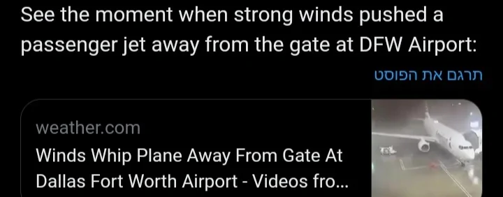 - אומנם לא טורנדו אבל הרוח העיפה מטוס משרוול העלייה למטוס חנוך א