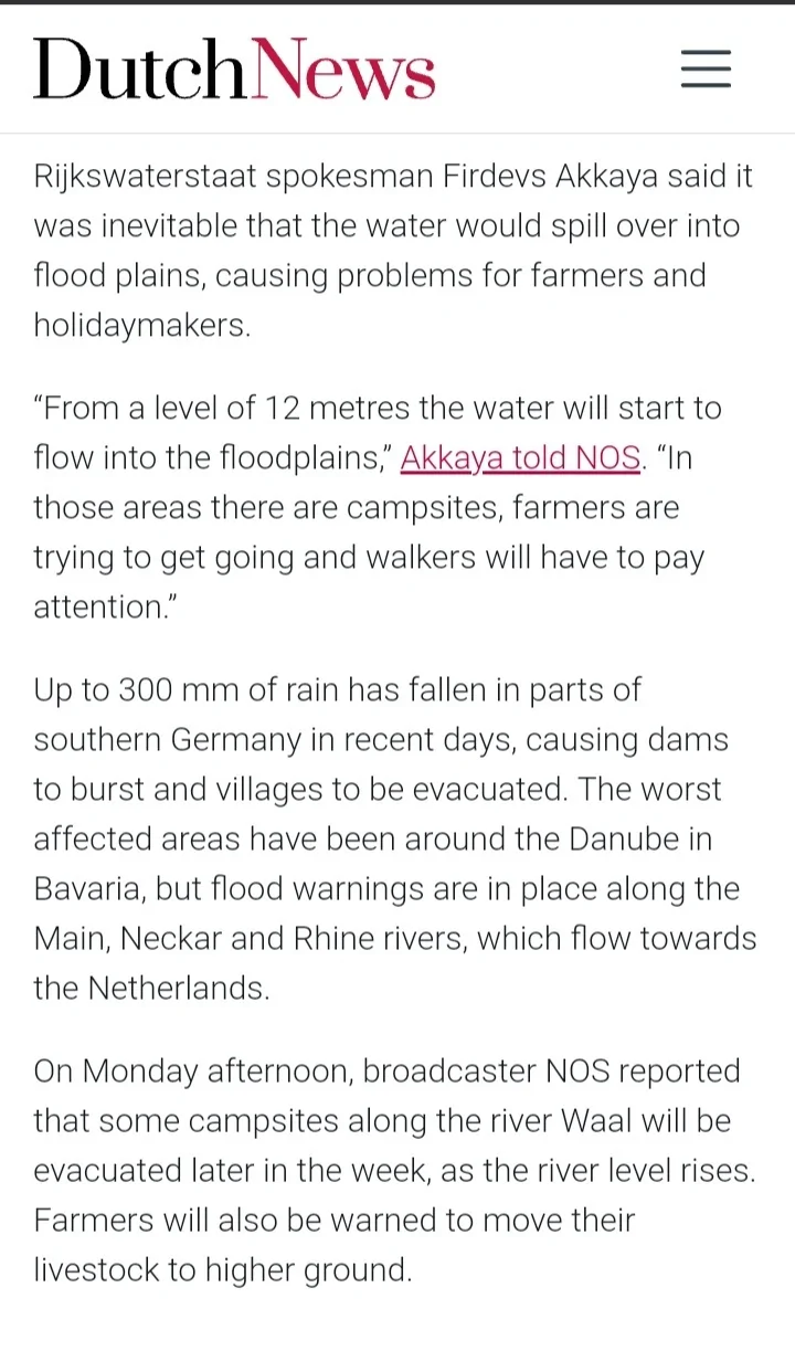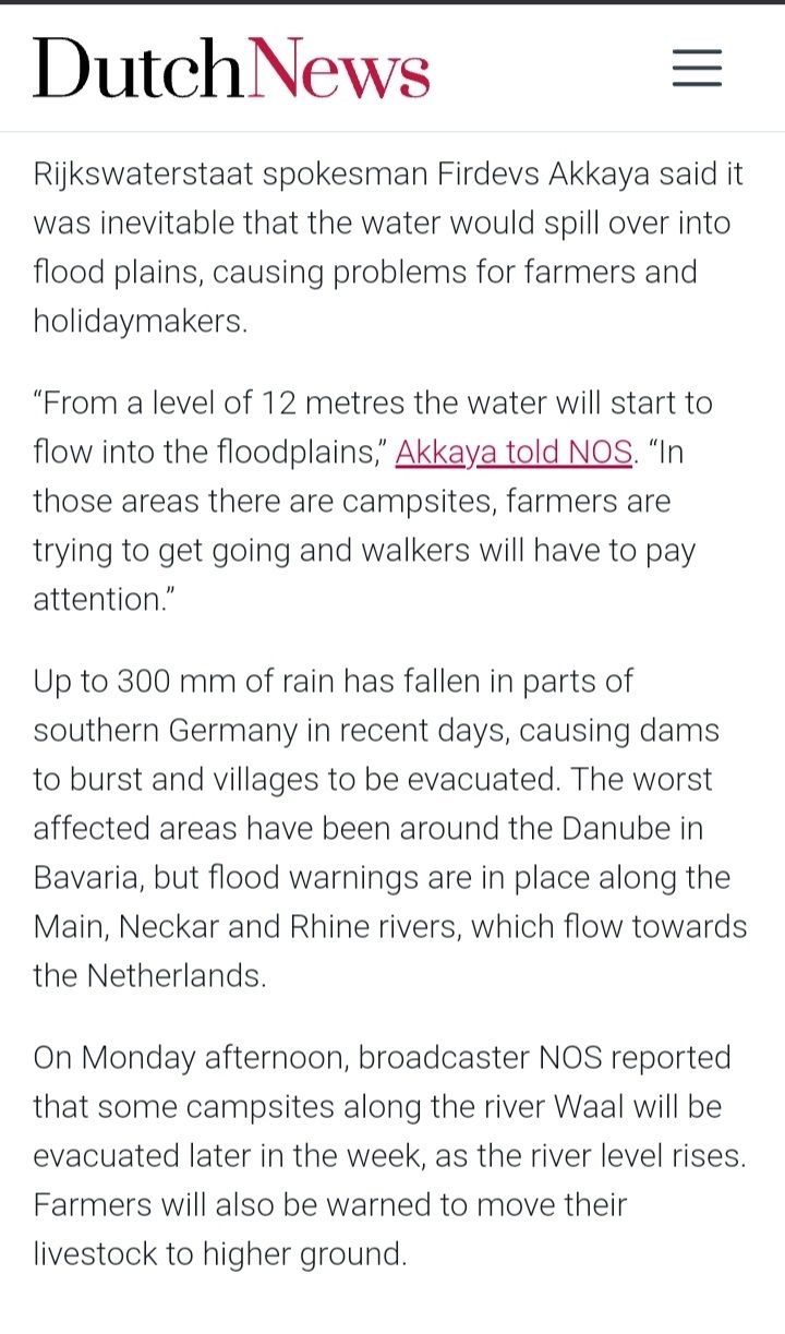 המבול הזה יזרום לכיוון הים מה שיגרום, בין היתר, להצפות בהולנד