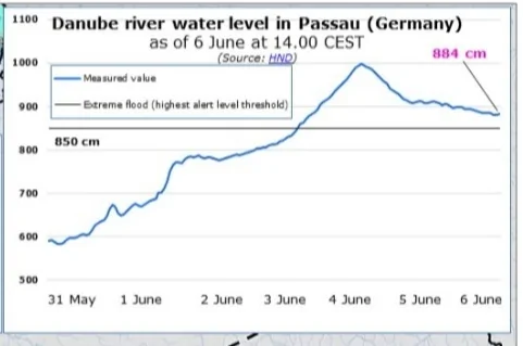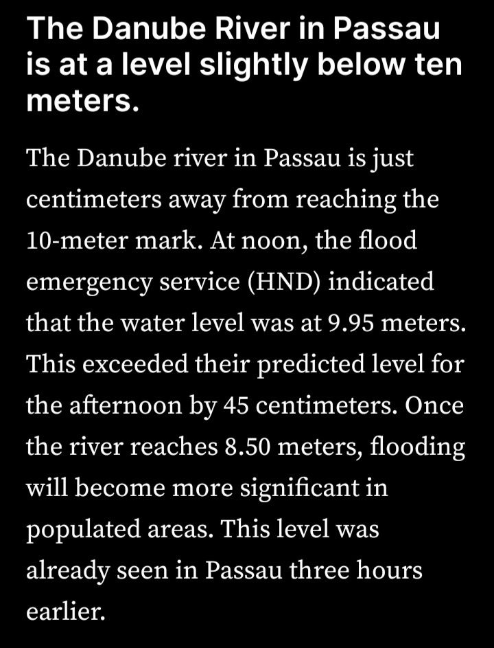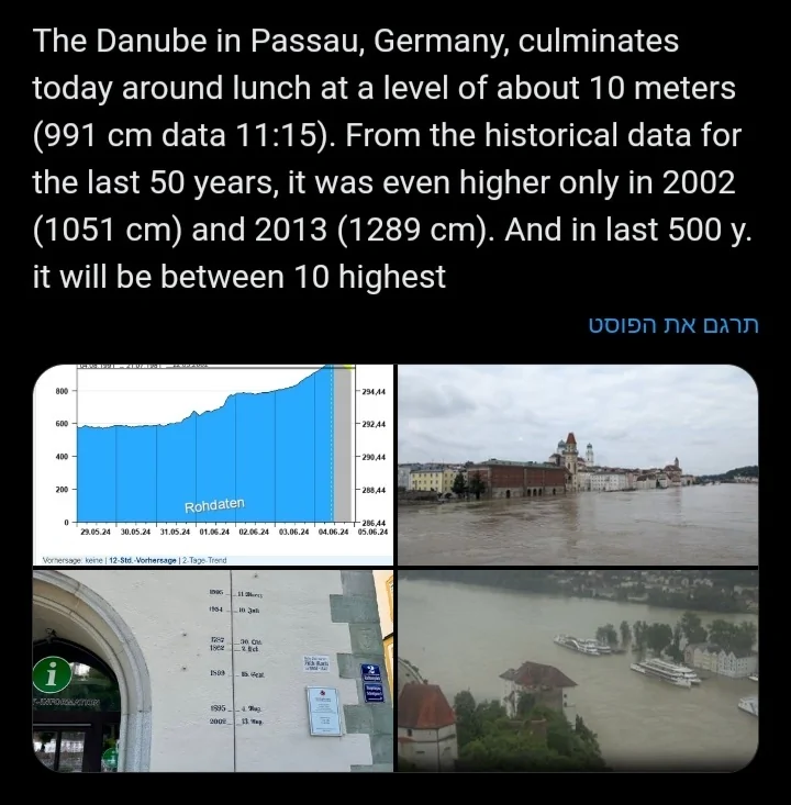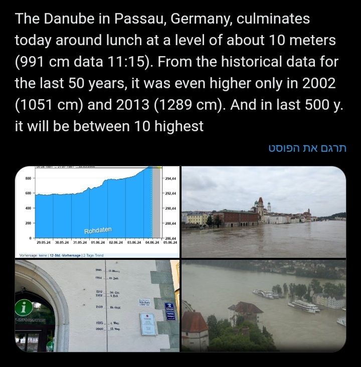 - Passau מפלס הדנובה כבר 1.5 מטר מעל מפלס שיטפון חנוך א