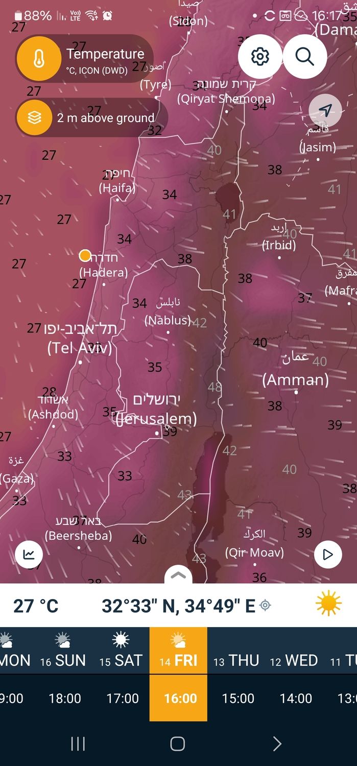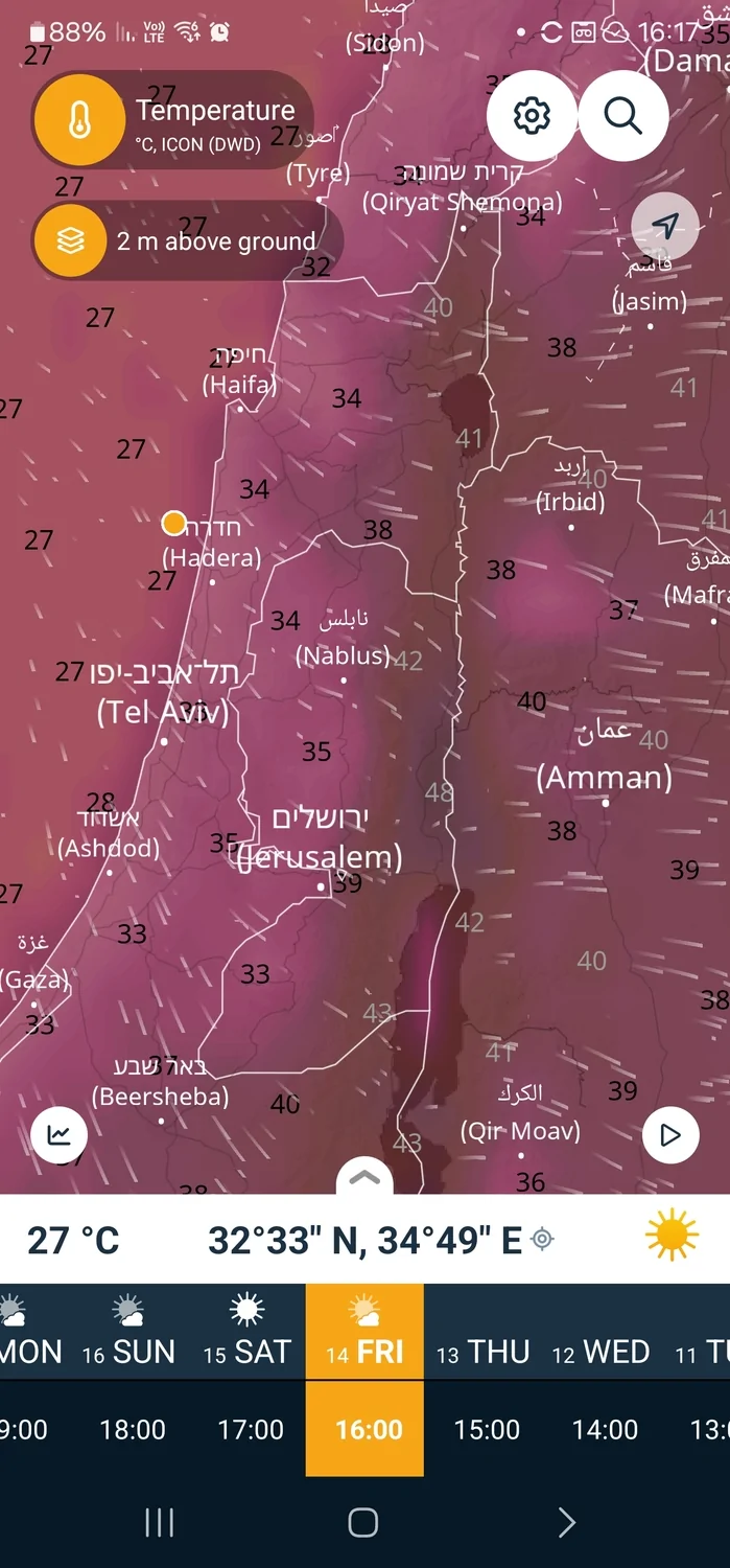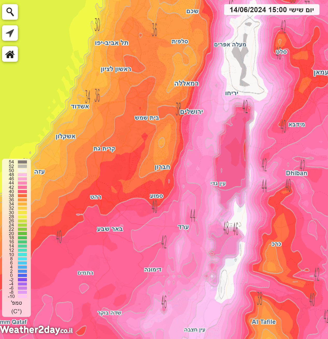 אנחנו לקראת היום החם ביותר השבוע, על פי מודל קוסמו עד 52°C בבקעה.