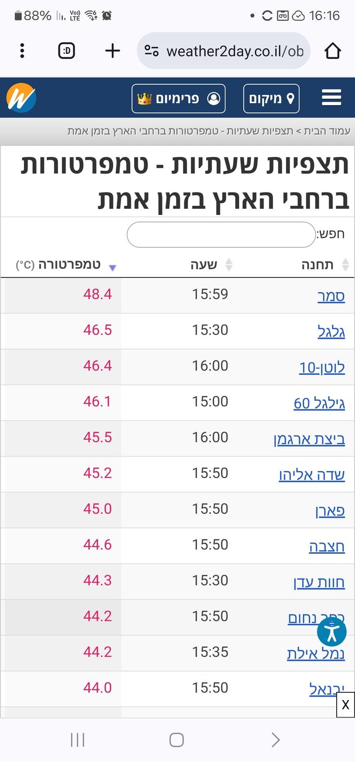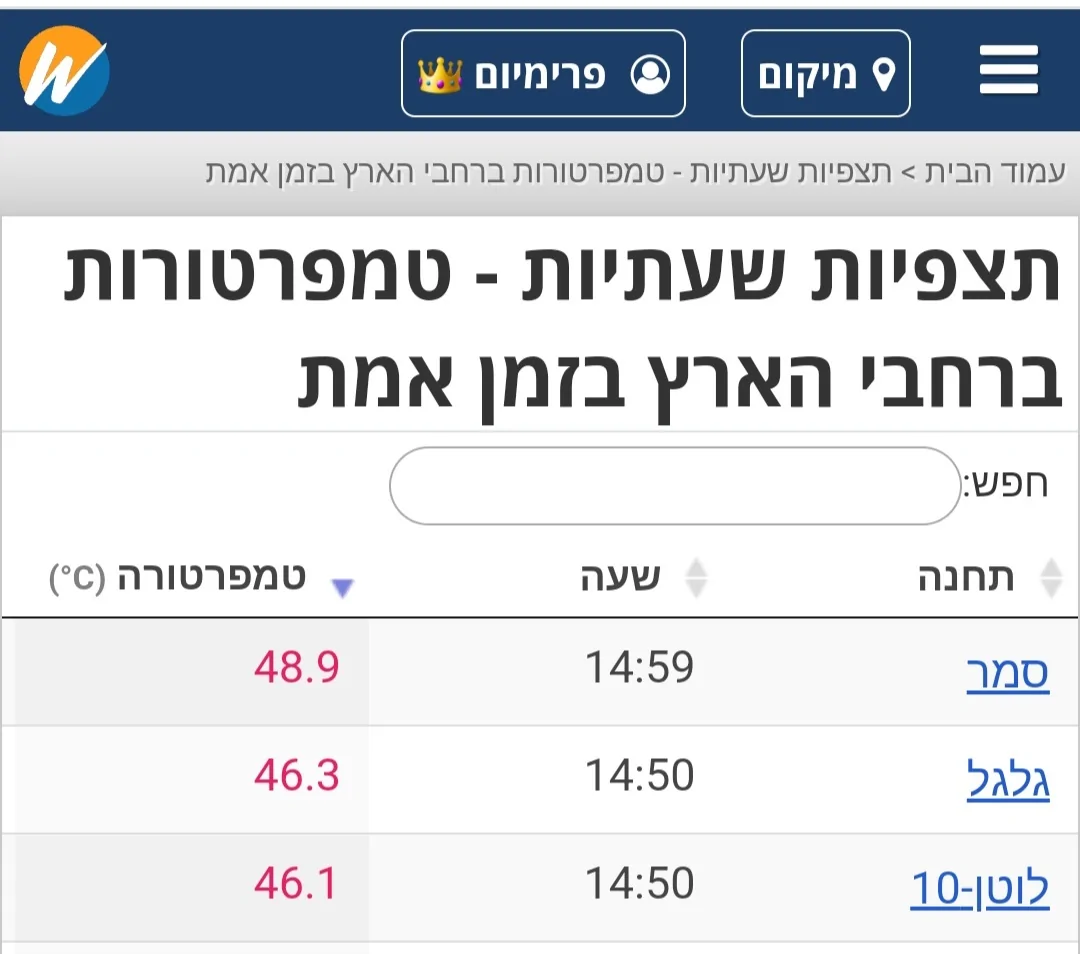 - שיאים יומיים מתוך רשת התחנות של האתר Weather2day